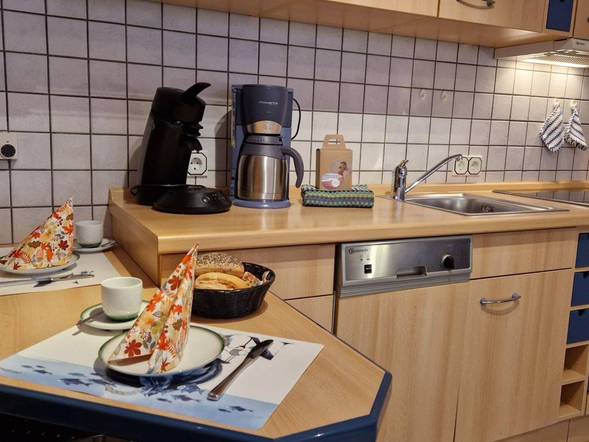 Die Ferienwohnung Krabbenkoje befindet sich im Erdgeschoss einer Apartmentanlage in direkter Deichlage, nur 150 m vom Hundestrand entfernt. Sie bietet Platz für bis zu zwei Personen und verfügt über einen offenen Wohnbereich mit einer modernen Küche. Diese ist mit einem Ceranfeld, Backofen, Spülmaschine und Kühlschrank mit Gefrierfach ausgestattet. Zusätzlich sind ein Toaster, Wasserkocher und eine Kaffeemaschine vorhanden. Das Schlafzimmer ist mit einem Doppelbett eingerichtet, während das Duschbad neu saniert wurde. WLAN ist kostenlos nutzbar. Die Wohnung bietet Zugang zu einer windgeschützten Terrasse mit Markise und einem zugewiesenen Parkplatz. Gemeinschaftlich nutzbar sind ein Fahrradabstellraum, ein Grillplatz, ein Spielplatz sowie ein Wasch- und Trockenraum. Hunde sind erlaubt, Bettwäsche und Handtücher können gegen Gebühr hinzugebucht werden.