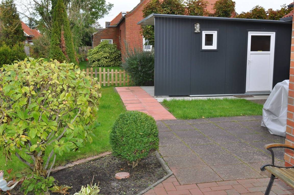 Die „Villa Hildalbert" bietet einen einladenden Außenbereich, der ideal zum Entspannen und Genießen ist. Der eingezäunte Garten erstreckt sich über eine großzügige Fläche und ist perfekt für Familien mit Kindern oder Hundehalter. Zwei Terrassen stehen zur Verfügung, um die frische Luft zu genießen oder eine schöne Zeit im Freien zu verbringen. Ob nach einem Ausflug zum nur 5-10 Minuten entfernten Strand von Norddeich oder beim Grillen im Garten – hier kann jeder Moment ausgekostet werden.