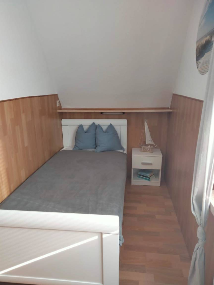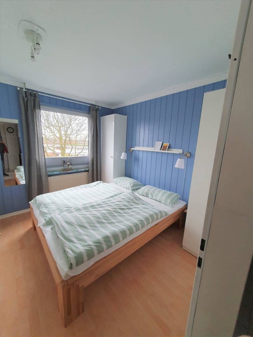 Die gemütliche Ferienwohnung „Backbord" in Norddeich bietet auf 33 m² Platz für bis zu 3 Personen. Sie befindet sich im Obergeschoss und verfügt über einen Wohn/Essbereich mit einer kleinen Küche. Zudem stehen zwei Schlafzimmer zur Verfügung: eines mit einem Doppelbett (160x200 cm) und eines mit einem Einzelbett (90x200 cm). Ein modernes Duschbad ergänzt die Ausstattung.