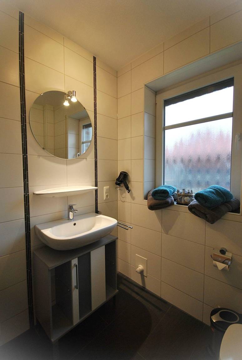 Im Obergeschoß befinden sich ein großzügig geschnittenes Schlafzimmer mit 2 Einzelbetten. Hier wäre genügend Platz um ein Baby-Reisebett aufzustellen.