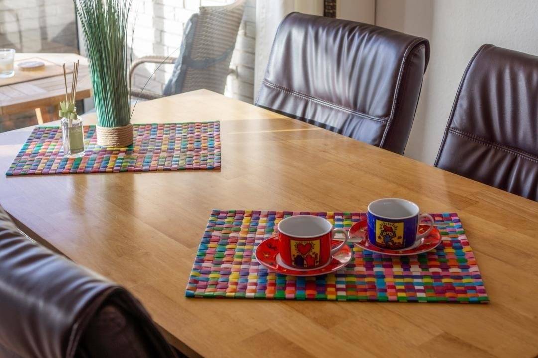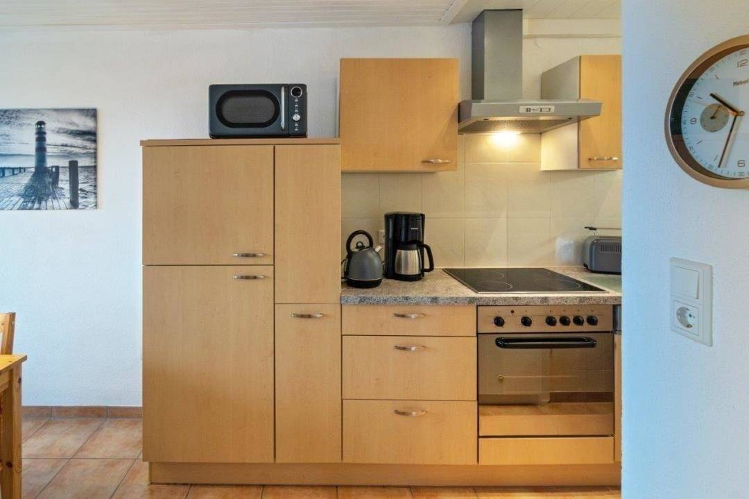 Die Küche ist kompakt und funktional. Die Ausstattung beinhaltet: Herd mit Backofen, Kaffeemaschine, Kühlschrank, Mikrowelle, Geschirrspüler in der Küchenzeile, Toaster, Eierkocher, Geschirr, Gläser, Becher etc. Die Küchenzeile mit Esstisch und 4 Stühlen befindet sich im kombinierten Wohn-Küchenraum.