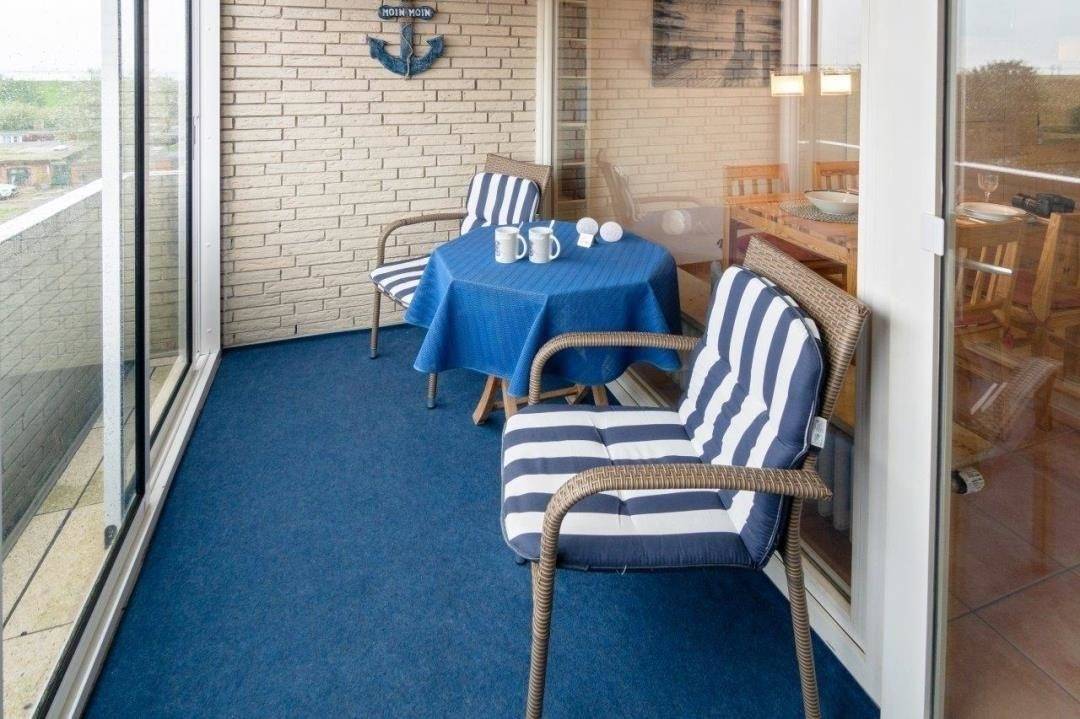 Highlight der Ferienwohnung ist ohne Frage ihr Balkon. Der Freisitz wurde zum verglasten Wintergarten umgebaut, so dass Sie das Nordsee-Panorama, welches sich Ihnen hier bietet, auch im Winter in vollen Zügen genießen können. Selbstverständlich lässt sich der Wintergarten auch öffnen, so dass bei gutem Wetter das herrliche Klima Norddeichs genossen werden kann. Dank der südwestlichen Ausrichtung bietet Ihnen der Wintergarten bis in die Abendstunden hinein Sonne - ein echter Glücksgriff also!