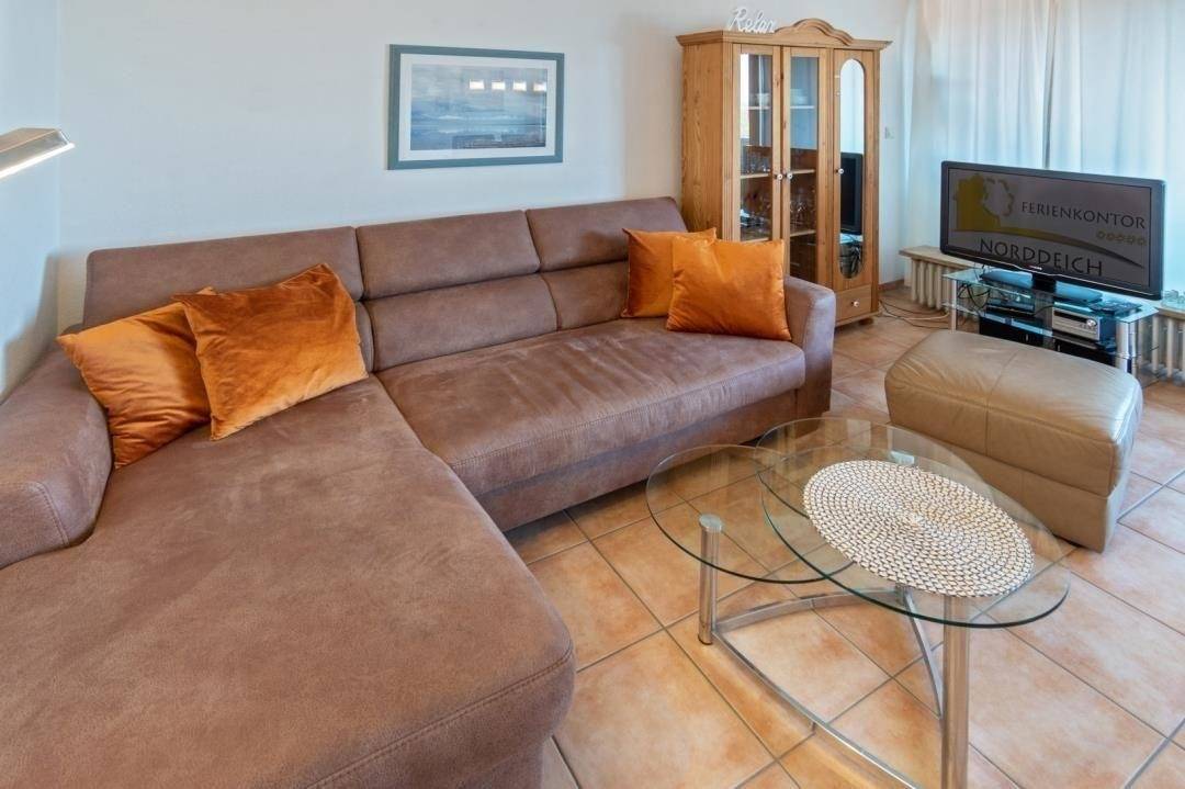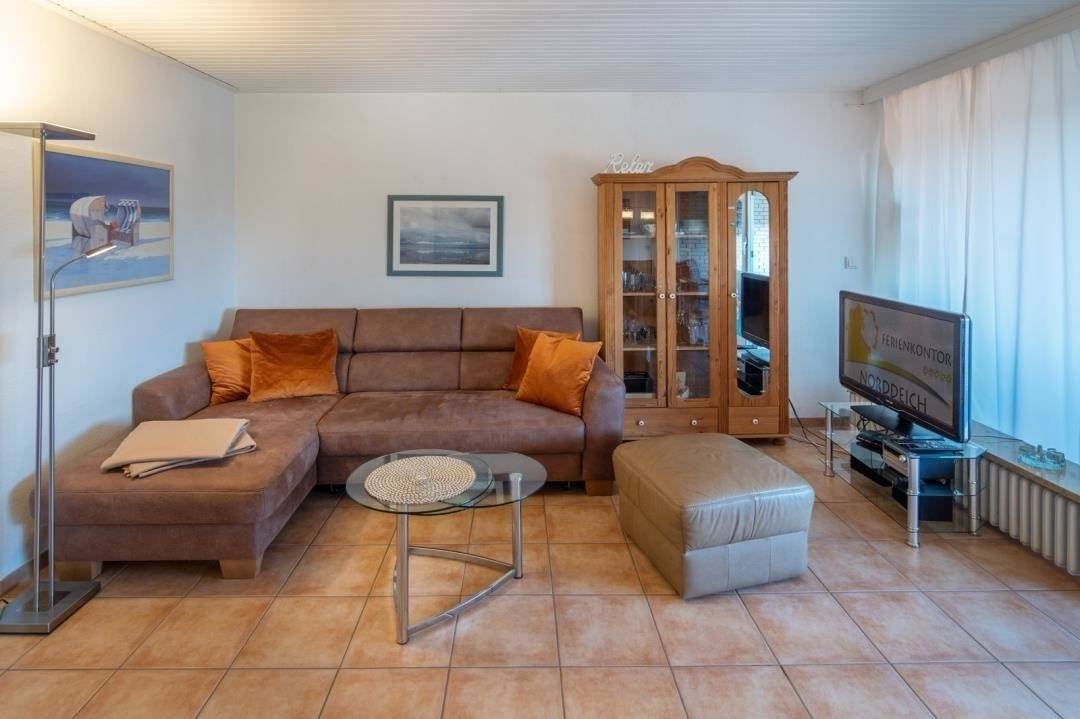 In der obersten Etage des Appartementhauses in direkter Deichnähe gelegen erwartet Sie die Ferienwohnung Meerblick. Hier ist der Name Programm: Vom verglasten Wintergarten/Balkon aus genießen Sie ein wunderbares Nordsee-Panorama. Ideal für zwei Personen.