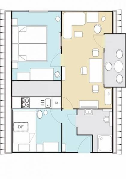 45 m² Ferienwohnung ∙ 2 Schlafzimmer ∙ 3 Gäste