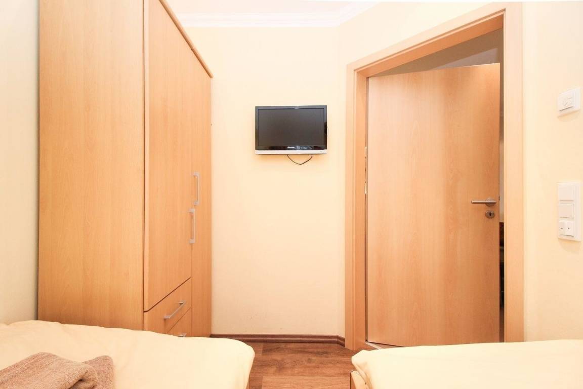 Das Kinderzimmer ist mit zwei Einzelbetten (0,80x2,00), Kleiderschrank, Radio mit CD und ebenfalls einem Flachbildschirm-TV ausgestattet.