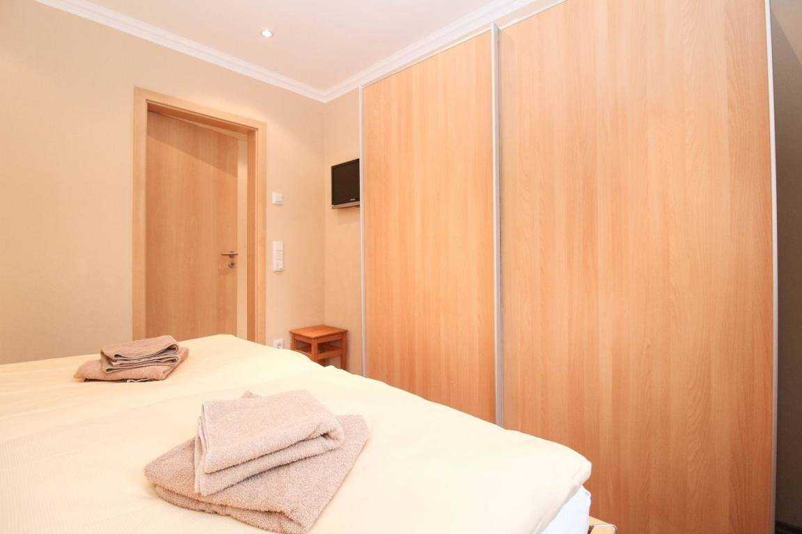 Im Elternschlafzimmer gibt es neben einem Doppelbett(1,80x2,00), Nachtkonsolen und Kleiderschrank einen Flachbildschirm-TV.