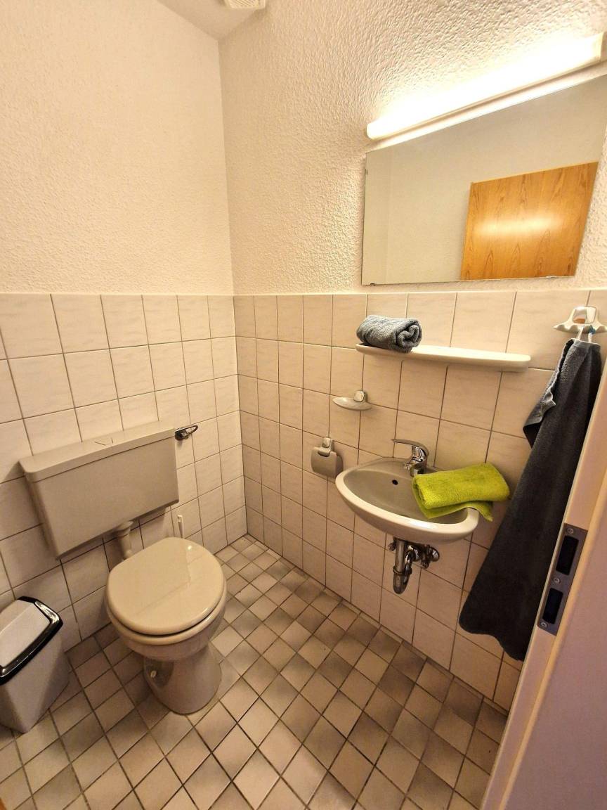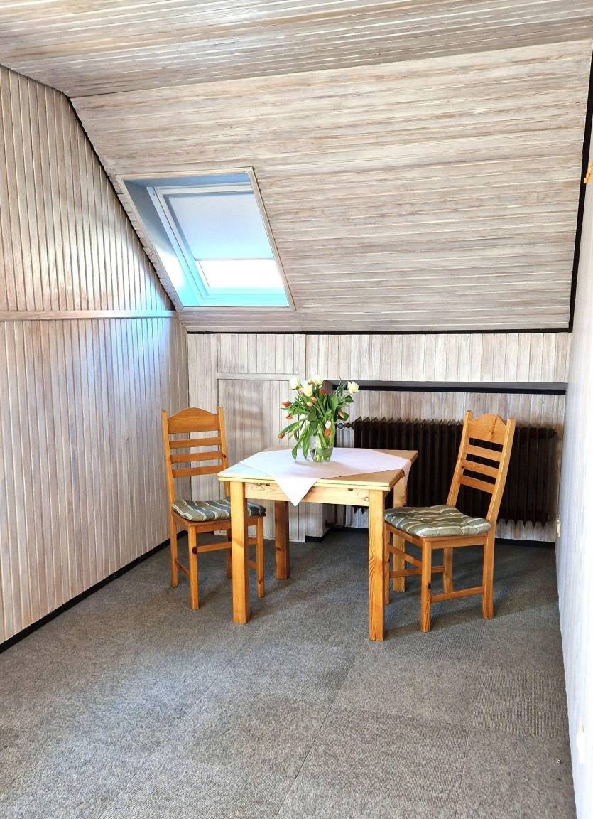 Diese große Ferienwohnung im Zentrum von Norddeich erstreckt sich über zwei Etagen im Gästehaus Kühn und bietet Platz für vier Personen sowie ein Baby. Im Erdgeschoss befindet sich ein offener Wohnbereich mit einer komplett ausgestatteten Küche, die über einen 4-Platten-Herd, Backofen, Mikrowelle, Toaster, Wasserkocher und eine Kaffeemaschine verfügt. Zusätzlich ist ein Gäste-WC vorhanden. Über eine schmale Treppe gelangt man ins Obergeschoss, wo zwei Schlafzimmer mit Doppelbetten und ein Babybett zu finden sind. Das Bad ist mit einer Dusche und einem Fenster ausgestattet. Zur Ausstattung gehören WLAN und ein kostenloser Parkplatz am Haus. Im Gemeinschaftsgarten steht ein privater Spielplatz zur Verfügung. Bitte beachten: Bettwäsche und Handtücher sind nicht vorhanden, können jedoch gegen Aufpreis gebucht werden. Hunde sind willkommen, Katzen sind nicht gestattet. Die Schlüsselabholung erfolgt in der Norddeicher Str. 55 in Norden.