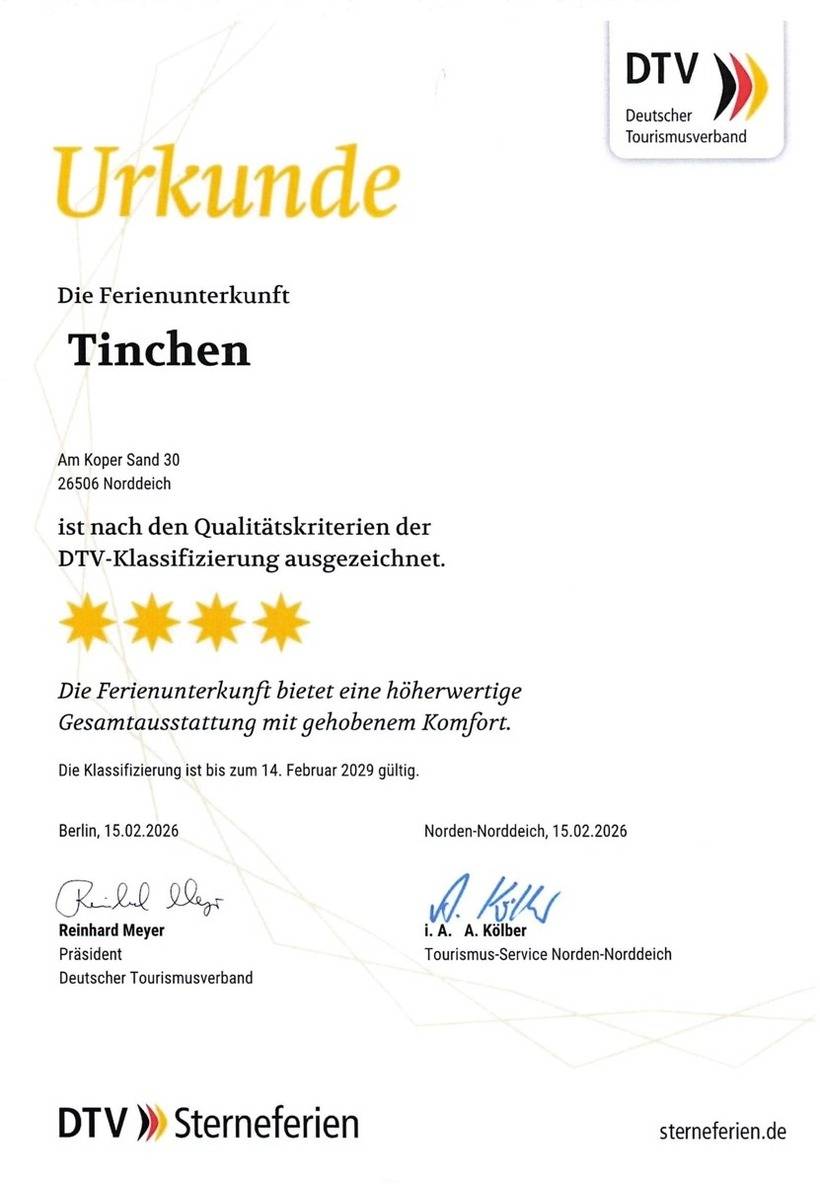 Das gemütliche Ferienhäuschen „Tinchen" liegt in ruhiger Sackgassenlage in Norddeich und ist nur ca. 5 Gehminuten vom Strand entfernt. Mit Garten und Terrasse bietet es ideale Voraussetzungen für entspannte Urlaubstage an der Nordsee.