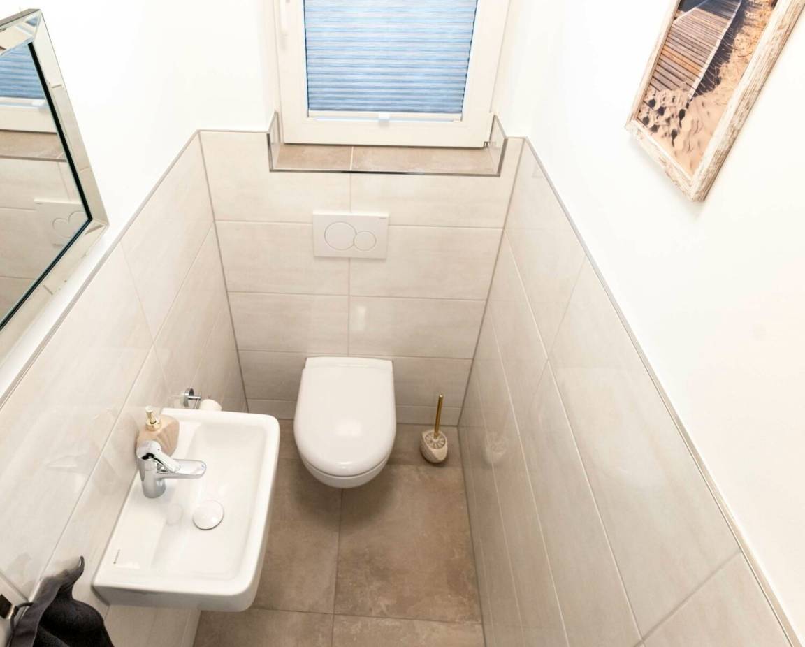 Das gemütliche Ferienhäuschen „Tinchen" befindet sich in ruhiger Sackgassenlage in Norddeich und liegt nur ca. 5 Gehminuten vom Strand entfernt. Das lichtdurchflutete Ferienhaus ist komfortabel und hochwertig ausgestattet. Der helle Wohnbereich verfügt über einen Essbereich sowie eine offene Küche. Das moderne Badezimmer ist mit einer Dusche ausgestattet.