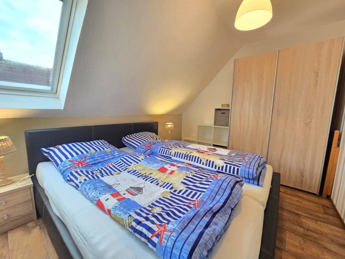 Das charmante Ferienmittelhaus in Norddeich bietet auf zwei Etagen Platz für bis zu 4 Personen. Im Obergeschoss befinden sich zwei Schlafzimmer: eines mit einem Doppelbett und eines mit zwei Einzelbetten. Beide Zimmer sind mit komfortablen Matratzen und ausreichend Stauraum ausgestattet. Der offene Wohn- und Essbereich lädt mit einem bequemen Sofa und einem großen Flachbild-TV zu gemütlichen Stunden ein.