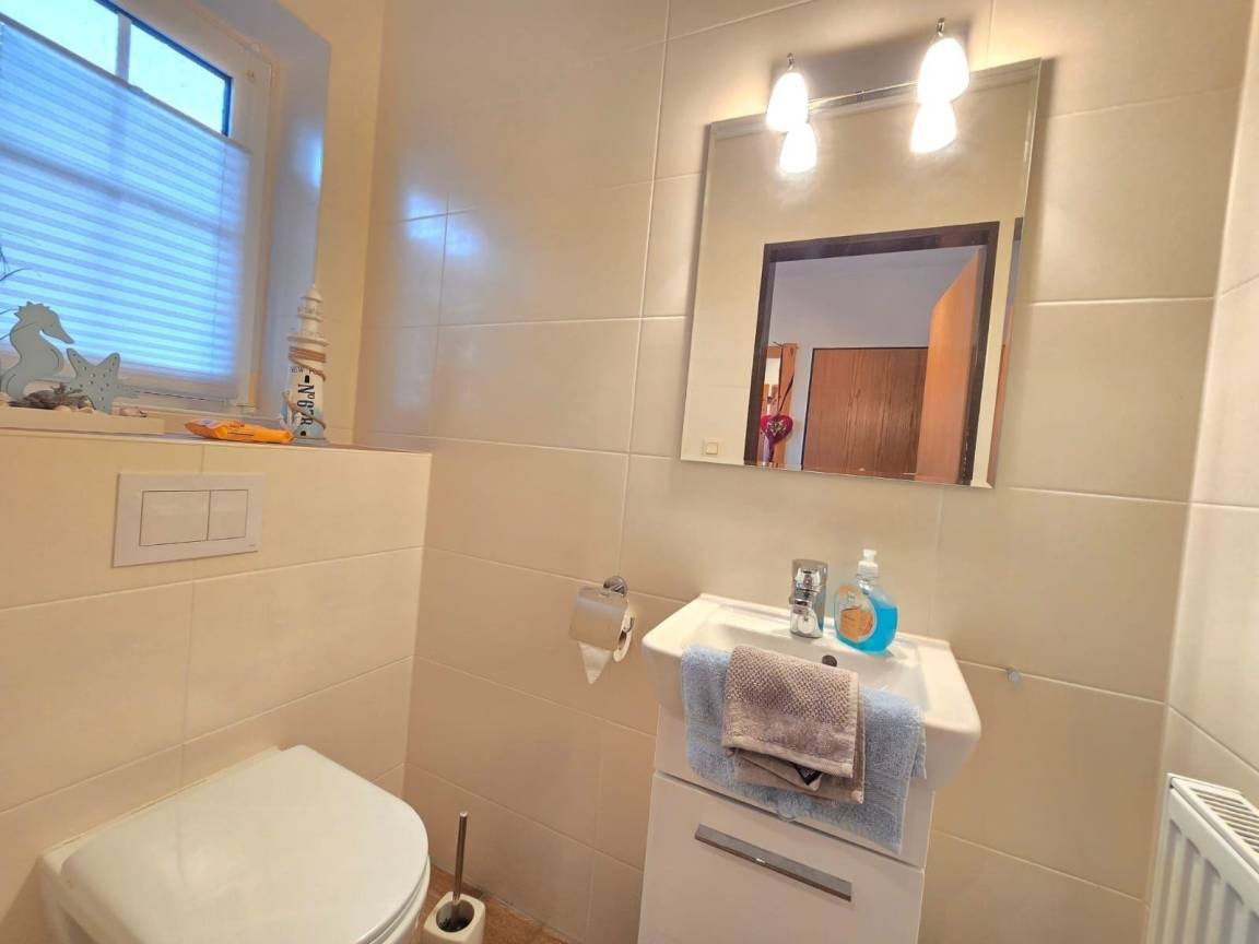 Die Küche ist voll ausgestattet mit Geschirrspüler, Herd, Backofen, Kühlschrank und Kaffeemaschine, ideal für die Zubereitung leckerer Speisen. Im Obergeschoss befindet sich ein modernes Badezimmer mit Dusche und WC, während ein zusätzliches Gäste-WC im Erdgeschoss zur Verfügung steht. Bettwäsche und Handtücher können auf Wunsch hinzugebucht werden.