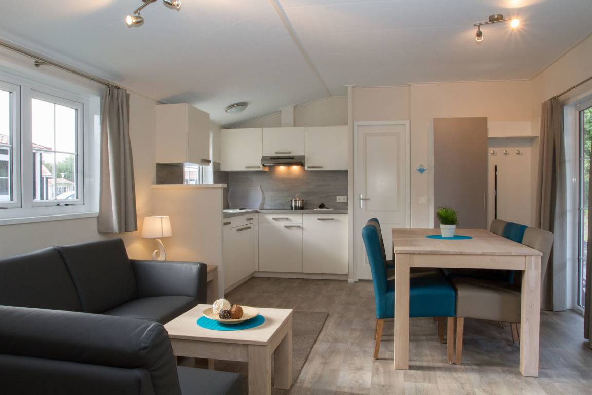 Ferienhaus mit rd. 50m² und Platz für bis zu sechs Personen. 3 Schlafzimmer (davon 2 mit TV und 1 mal Etagenbett), 2 Badezimmer. großer Wohnraum mit Küche, Sitzgelegenheiten und Unterhaltungsmedien (TV). Im Außenbereich gibt es einen Stellplatz für Ihr Auto und die Terrasse lädt zum gemütlichen Verweilen ein. Die Chalets befinden sich in einem eigenen Parkareal unseres Platzes mit eigener Zufahrt.