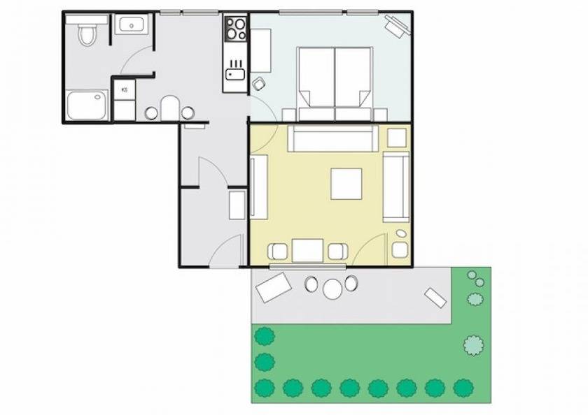 52 m² Ferienwohnung ∙ 1 Schlafzimmer ∙ 2 Gäste
