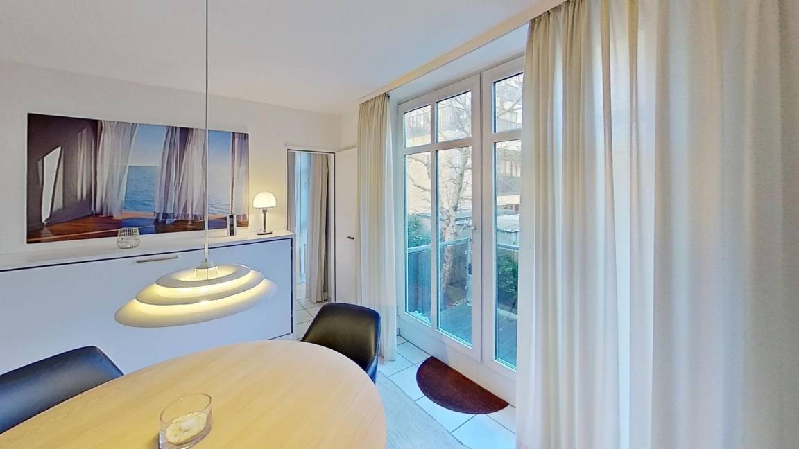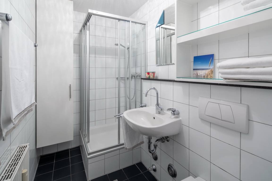 Die Ferienwohnung „Auszeit" für drei Personen liegt in ruhiger Lage im Zentrum Norderneys. Sie bitte einen gemütlichen Wohnraum mit Esstisch und Zugang zum Balkon in den ruhigen Innenhof. In der Sitzecke mit Sofas lassen sich entspannte Abende verbringen. Das Norderneyer Schlafzimmer geht vom Wohnraum ab, genau wie die Küche. Von hier gelangen Sie ins Duschbad. Es stehen Ihnen gemeinschaftlich genutzte Waschmaschine und Trockner gegen Gebühr zur Verfügung. Sie gelangen zum Nordstrand (Kaiserwiese, Milchbar) in wenigen Minuten zu Fuß und sind ebenso im Stadtkern mit Restaurants und Einkaufsmöglichkeiten. Ein Fahrradverleih liegt in fußläufiger Entfernung.