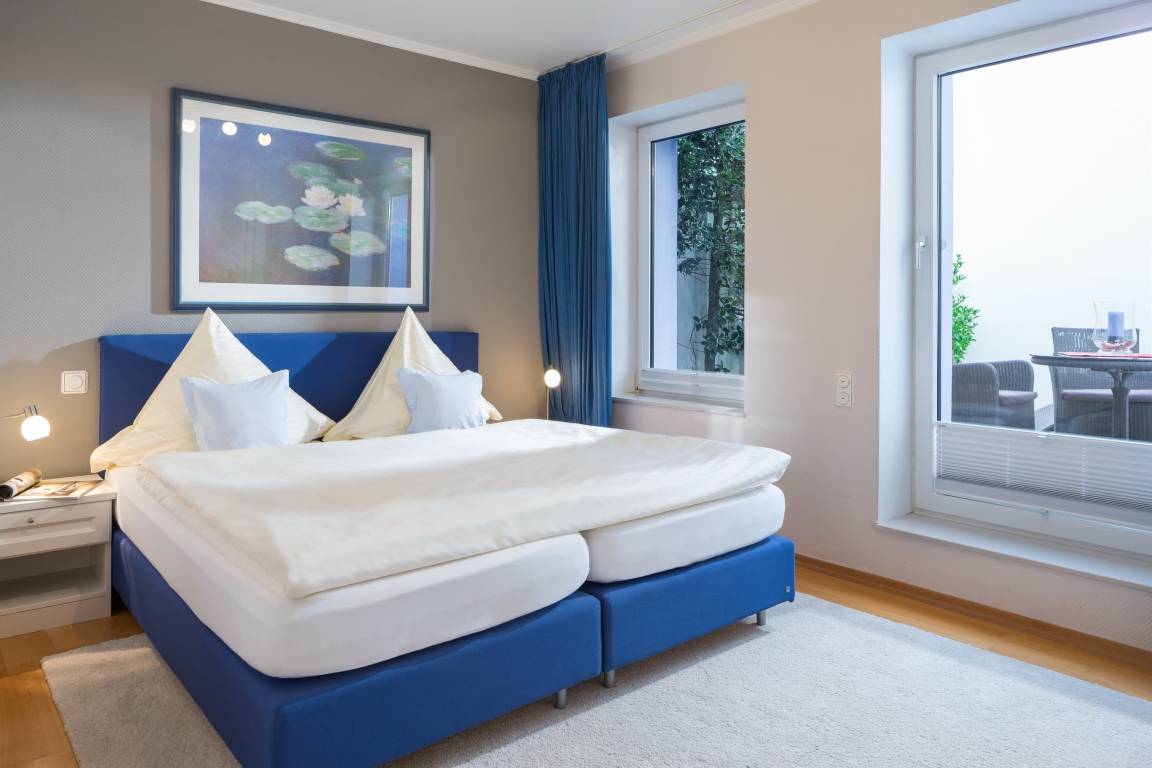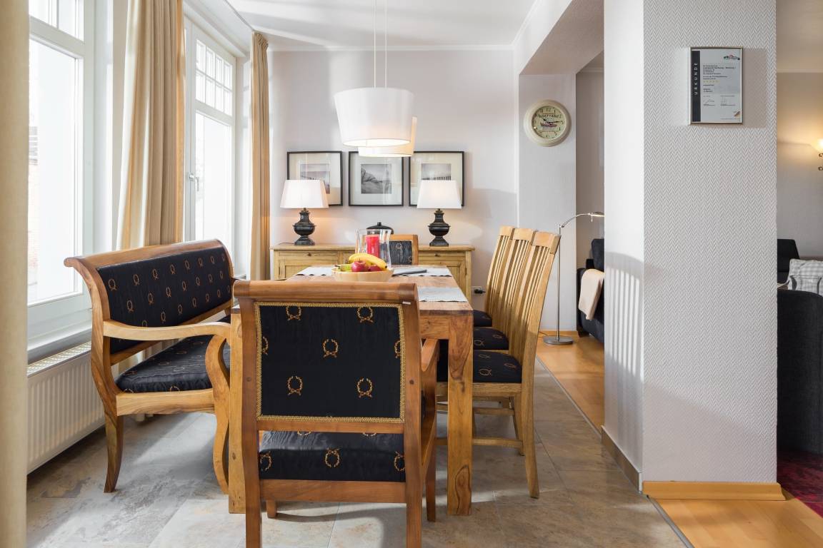Die großzügige 80 m² EG-Wohnung mit einem 8 m² Lichthof bietet ausreichend Platz für bis zu 4 Personen. Die lichtdurchflutete Wohnküche mit großem, gemütlichem Essbereich verfügt über einen kleinen Freisitz im Außenbereich. Das komfortable Sofa im Wohnzimmer mit Kamin lädt zum gemütlichen Beisammen sein ein. Die beiden separaten Schlafzimmer verfügen je über ein Doppelbett. Ein Schlafzimmer hat zudem Zugang zum Lichthof. Die Wohnung mit Duschbad und separatem Gäste-WC ist für kleine, sowie große Familien ideal ausgestattet.