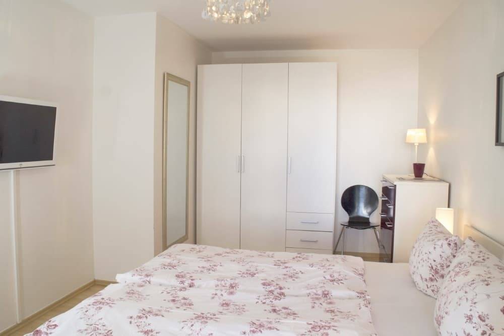 Die im Erdgeschoss gelegene Wohnung ist ca. 60qm groß und verfügt über ein modernes Wohnzimmer mit Schlafcouch und einen großzügigen Wohn- und Essbereich mit angrenzender Küchenzeile. Das separate Schlafzimmer bietet neben dem Doppelbett einen geräumigen Kleiderschrank und einen kleinen Balkon. In der Wohnung befinden sich zwei Flachbildfernseher, die Küche ist mit Spülmaschine, Backofen, Nespresso-Maschine etc. ausgestattet. Die sehr geräumige und überdachte Terrasse lädt zum gemütlichen Verweilen ein.
