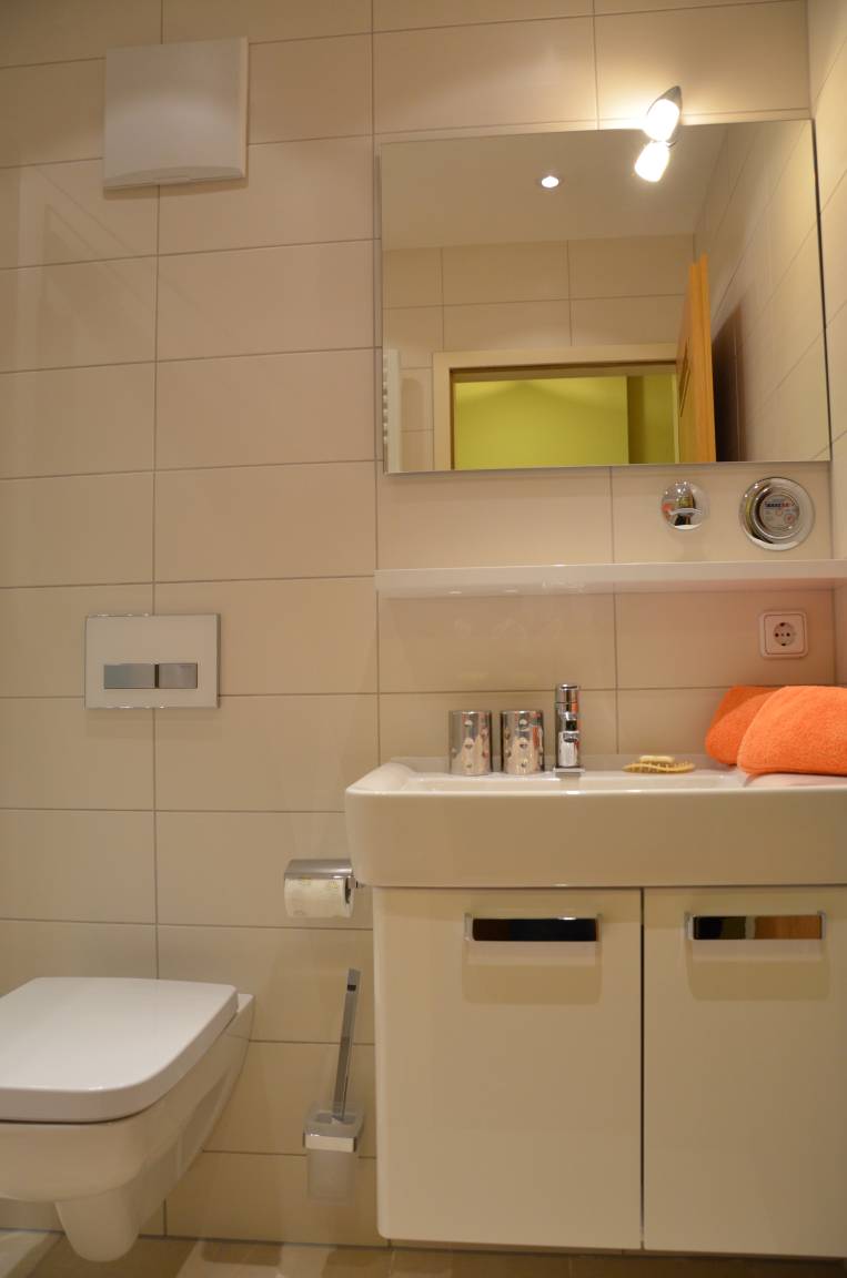 Die Ferienwohnung ist komplett eingerichtet (Farbfernsehgerät, Radio, Küchenzeile mit Ceran-Kochfeld, Geschirrspülmaschine und Backofen). Eine Waschmaschine und ein Trockner stehen im Gemeinschaftskeller gegen Gebühr zur Verfügung.