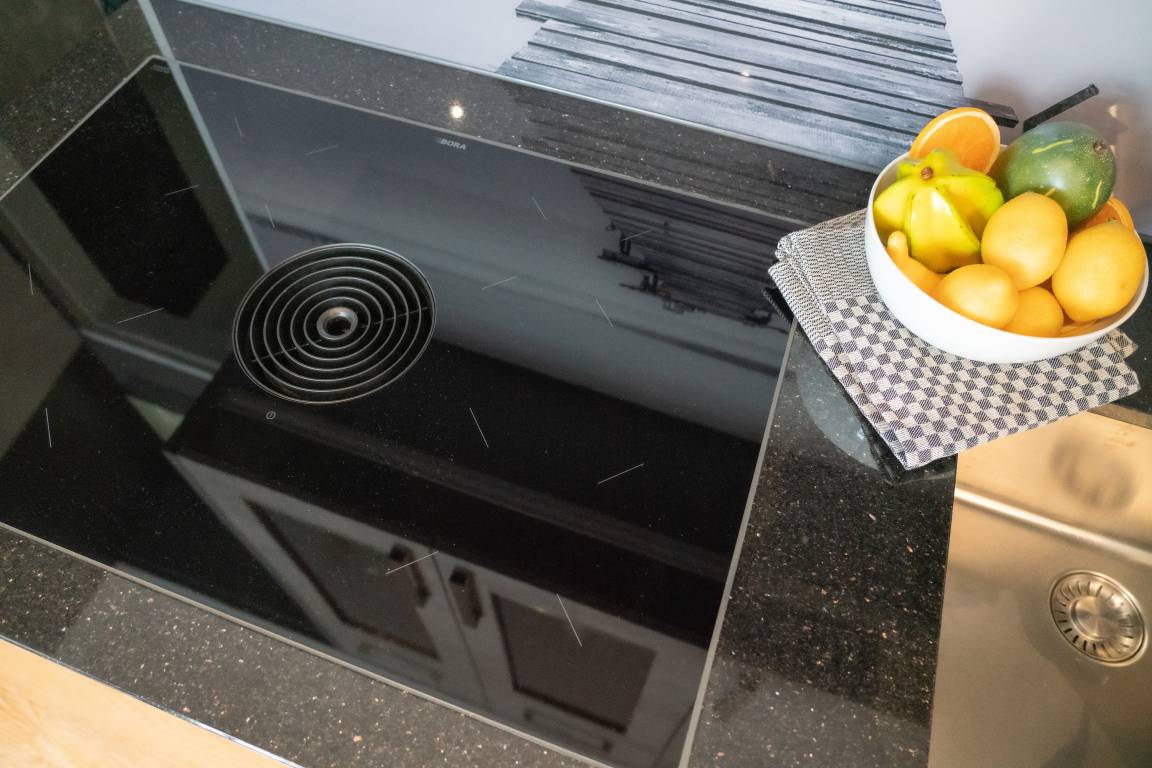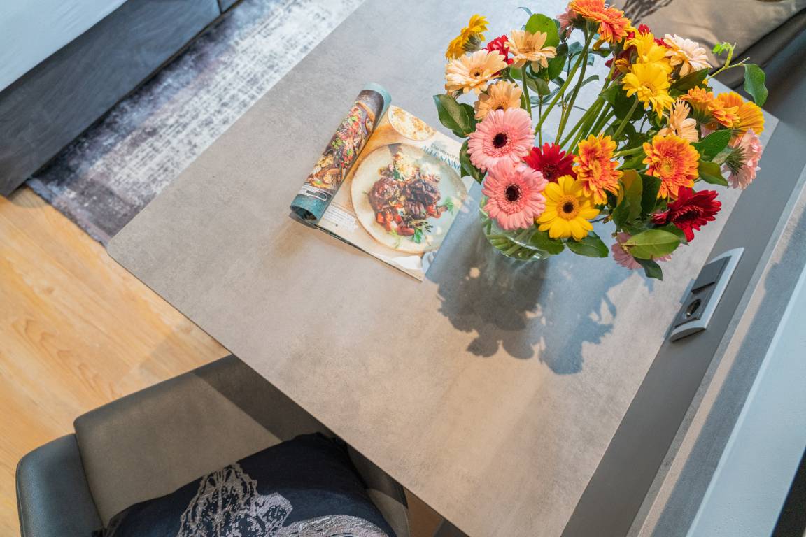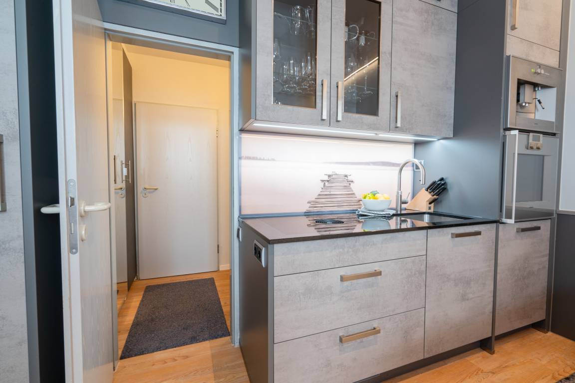 Das exklusiv ausgestattete Einraum-Appartement wurde 2021 komplett saniert. Es liegt im EG des „Haus Bielefeld" kurz hinter dem Empfangsbereich. Der Wohn-Schlafraum bietet ein gemütliches Boxspringbett (1,80m×2,00m), eine komplett ausgestattete Küchenzeile mit Kaffee-Vollautomat, Spülmaschine, Induktionsherd mit 4 Platten und eingelassenem Dunstabzug, einen Esstisch und einen großen Fernseher. Das Fenster geht in den Vorhof des „Haus Bielefeld" nahe der Eingangstür. Im kleinen Flur gibt es Stauraum für 2 Personen und auch das weiß geflieste Duschbad geht vom Flur ab. Die Gemeinschafts-Sauna im "Haus Bielefeld" kann gegen Gebühr mit genutzt werden.