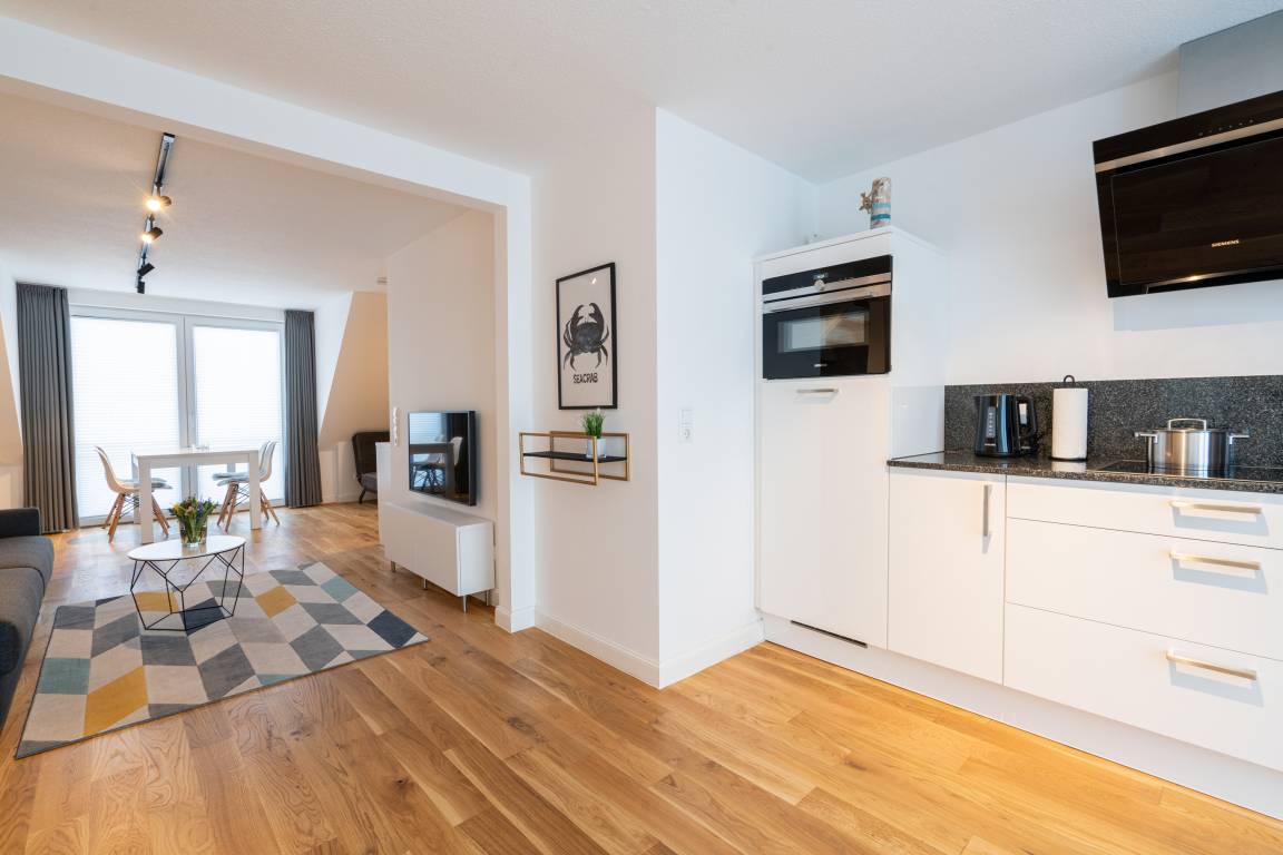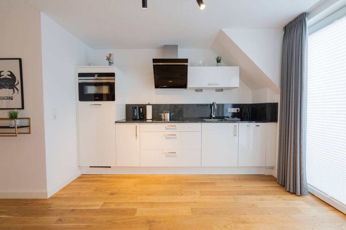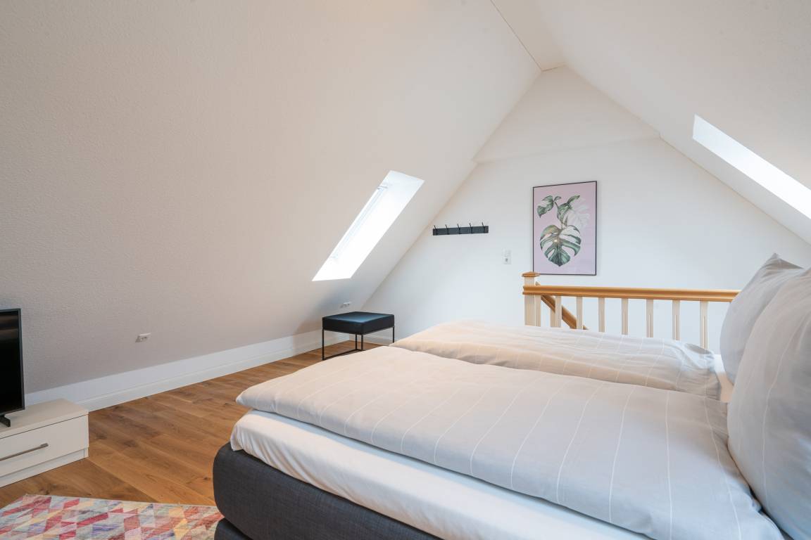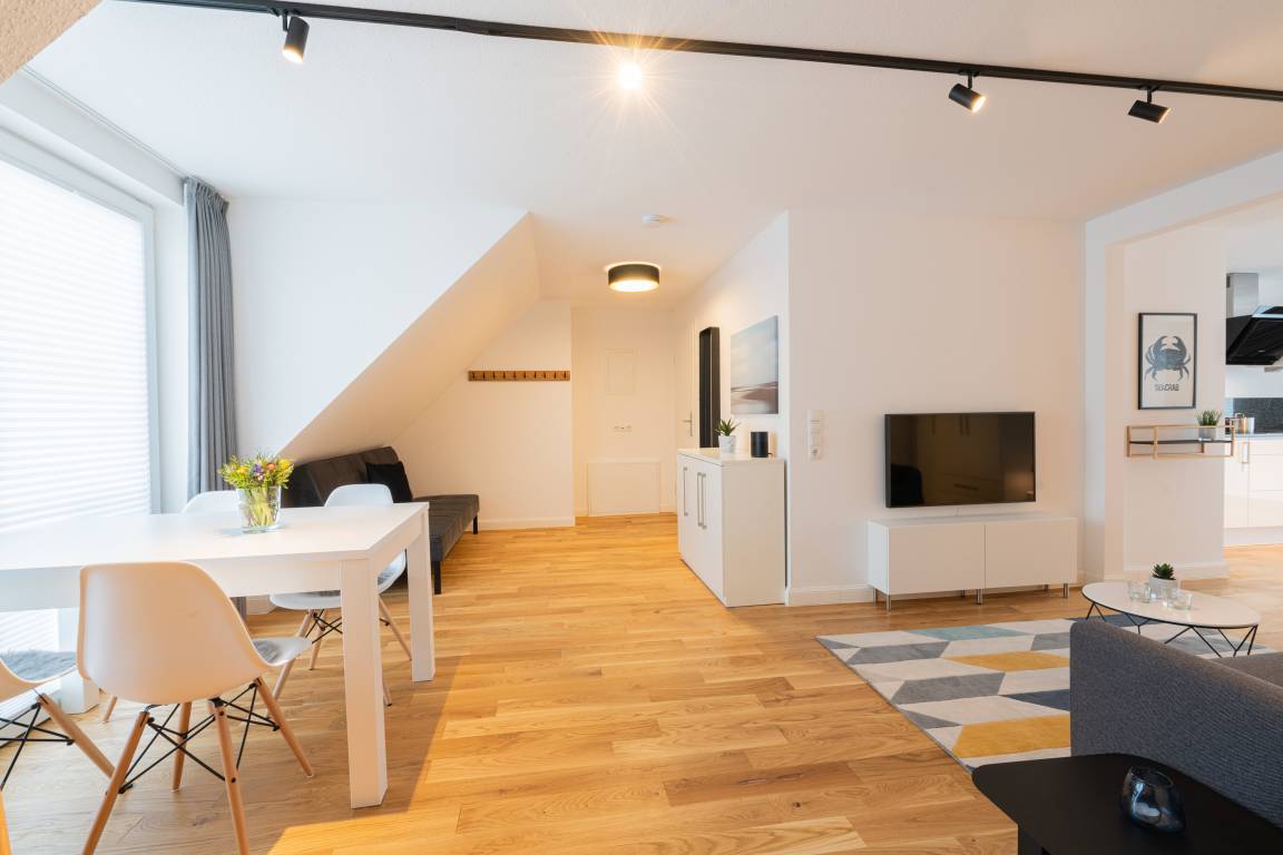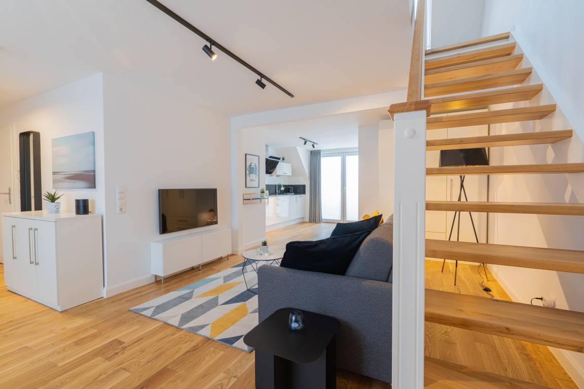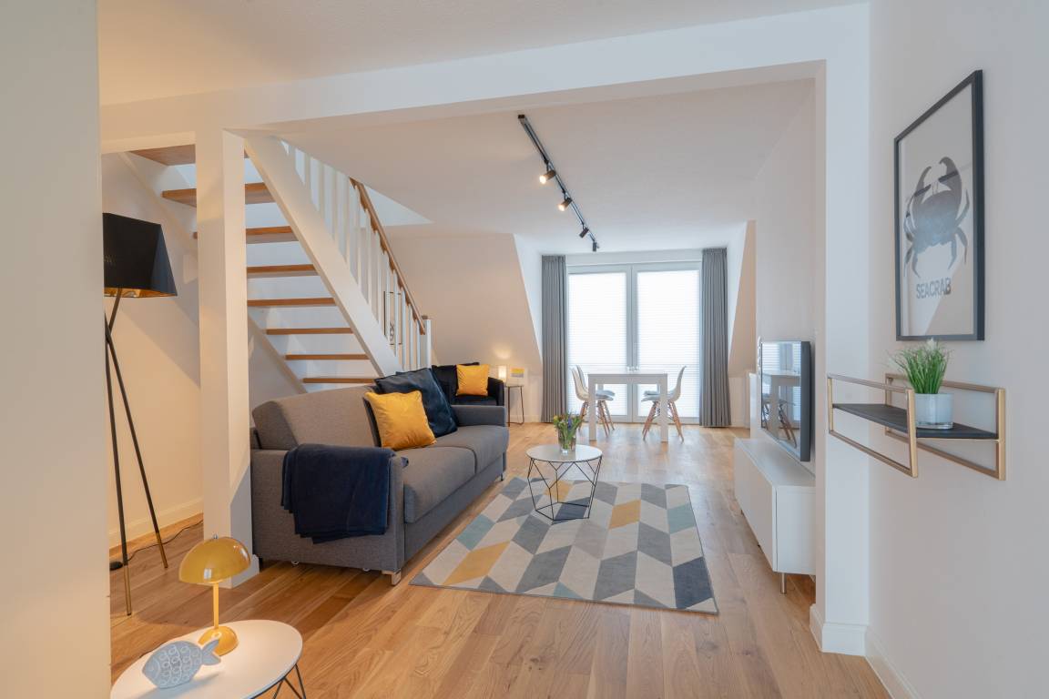 Unser "Lighthouse 5" ist ein helles, freundliches Appartement mit Echtholzparkett, separatem Schlafzimmer im Dachgeschoss,