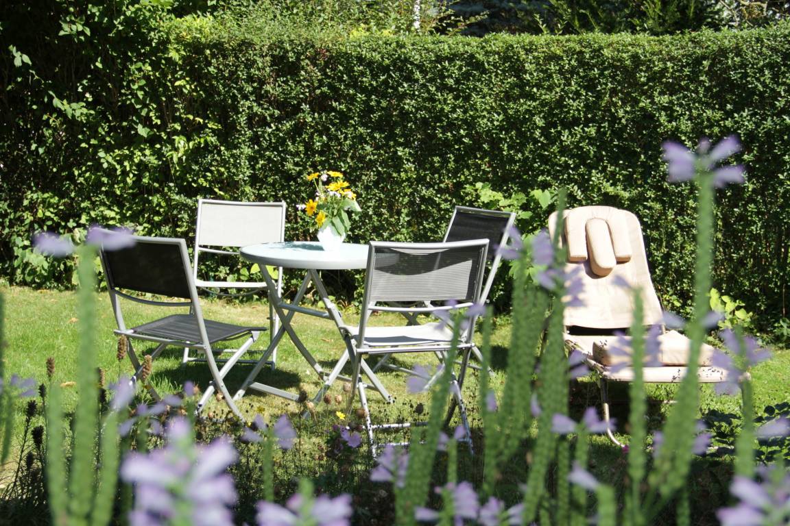 An schönen Tagen lädt der Garten zum Verweilen ein. Ein gemütlich eingerichteter Sitzplatz, Liegestuhl sowie ein Grill stehen zur Verfügung.