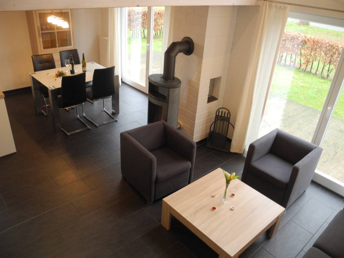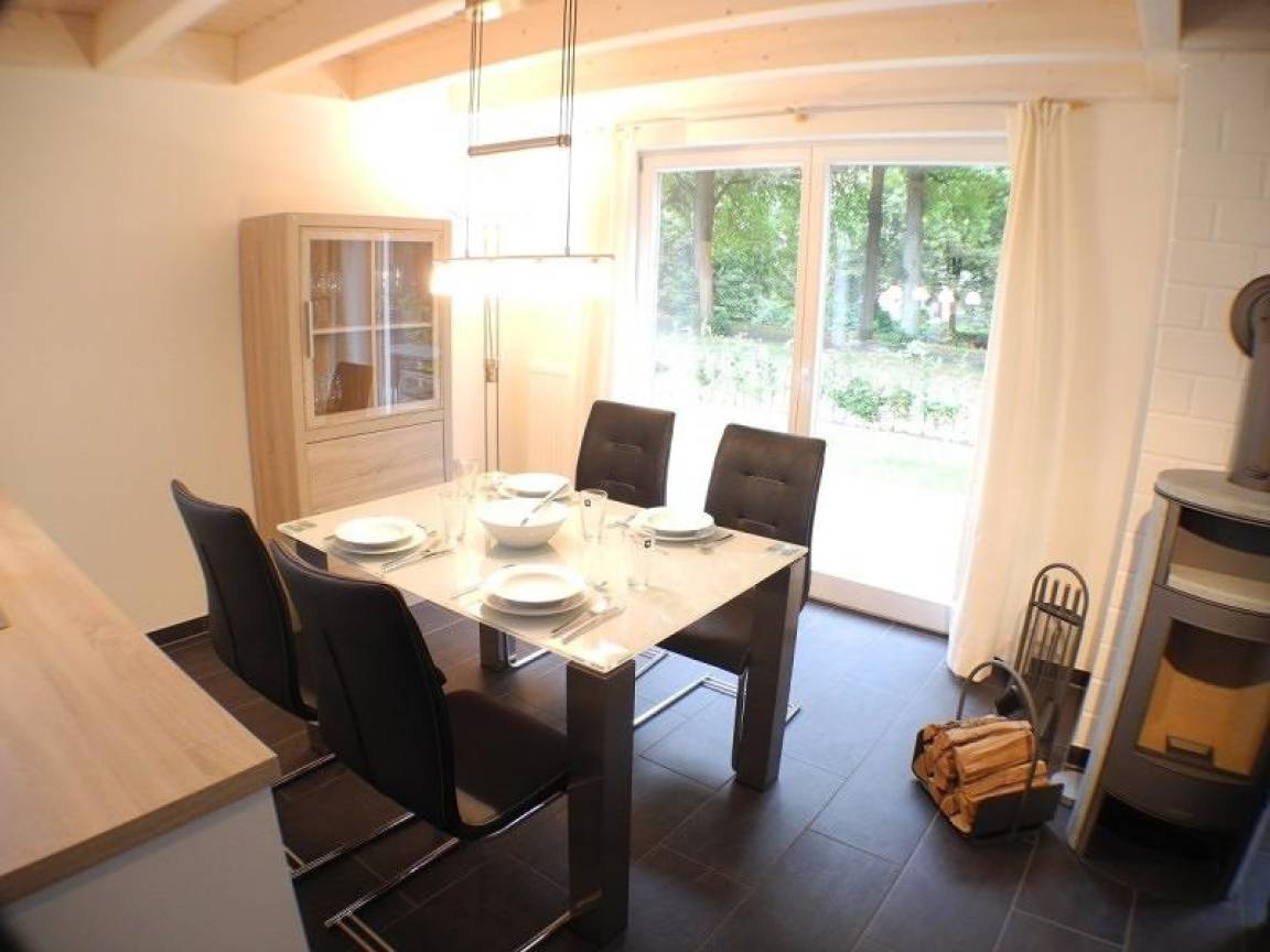 Durch die offene Küche mit dem angrenzenden lichtdurchfluteten Esszimmer ist das Wohlfühlen im Seeschlößchen vom ersten Tag an garantiert. Die Küche ist mit einem Geschirrspüler, Mikrowelle, wie auch Wasserkocher, Kaffeemaschine und Toaster, ausgestattet. Das helle Wohnzimmer mit Blick in den offenen Giebel und ein Kaminofen sorgen für ein hohes Maß an Gemütlichkeit. Zur weiteren Ausstattung gehören eine Stereoanlage und ein Flachbildfernseher.