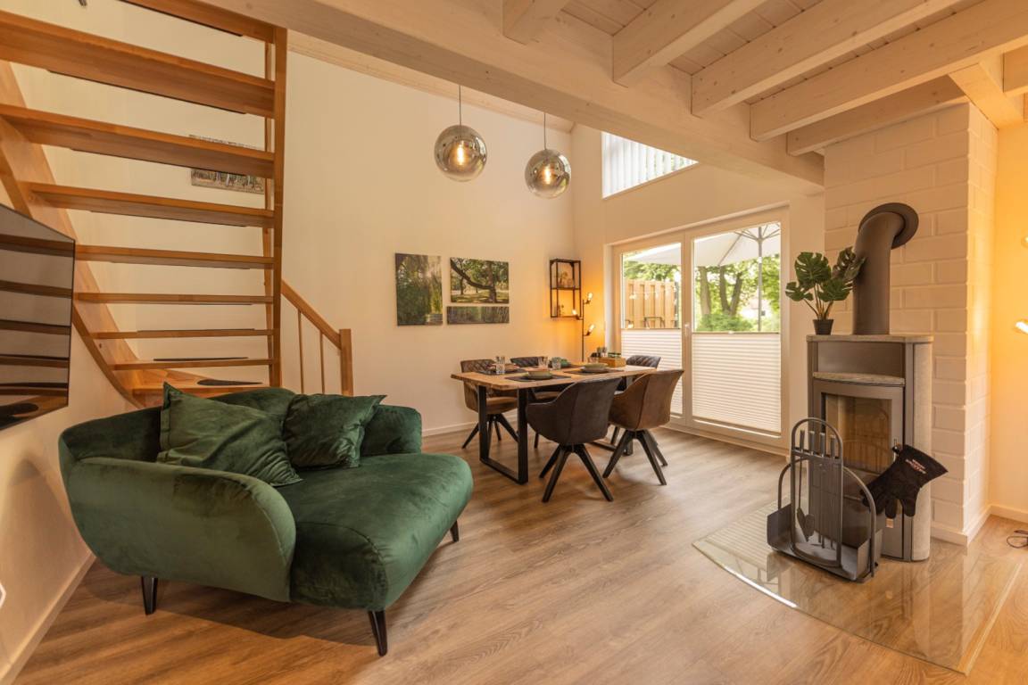 Mit unserer Villa Verde direkt am Kanal haben wir für Sie eine Oase im Grünen auf zwei Etagen zum Entspannen geschaffen. Zwei großzügige Samtsofas, eine offene Küche mit moderner Ausstattung, bodentiefe Fenster, Boxspringbetten, ein großes Badezimmer mit Wellness Sauna und Whirlpool, eine Holz–Terrasse mit bequemen Gartenstühlen und Liegen verschönern Ihnen die Urlaubstage.