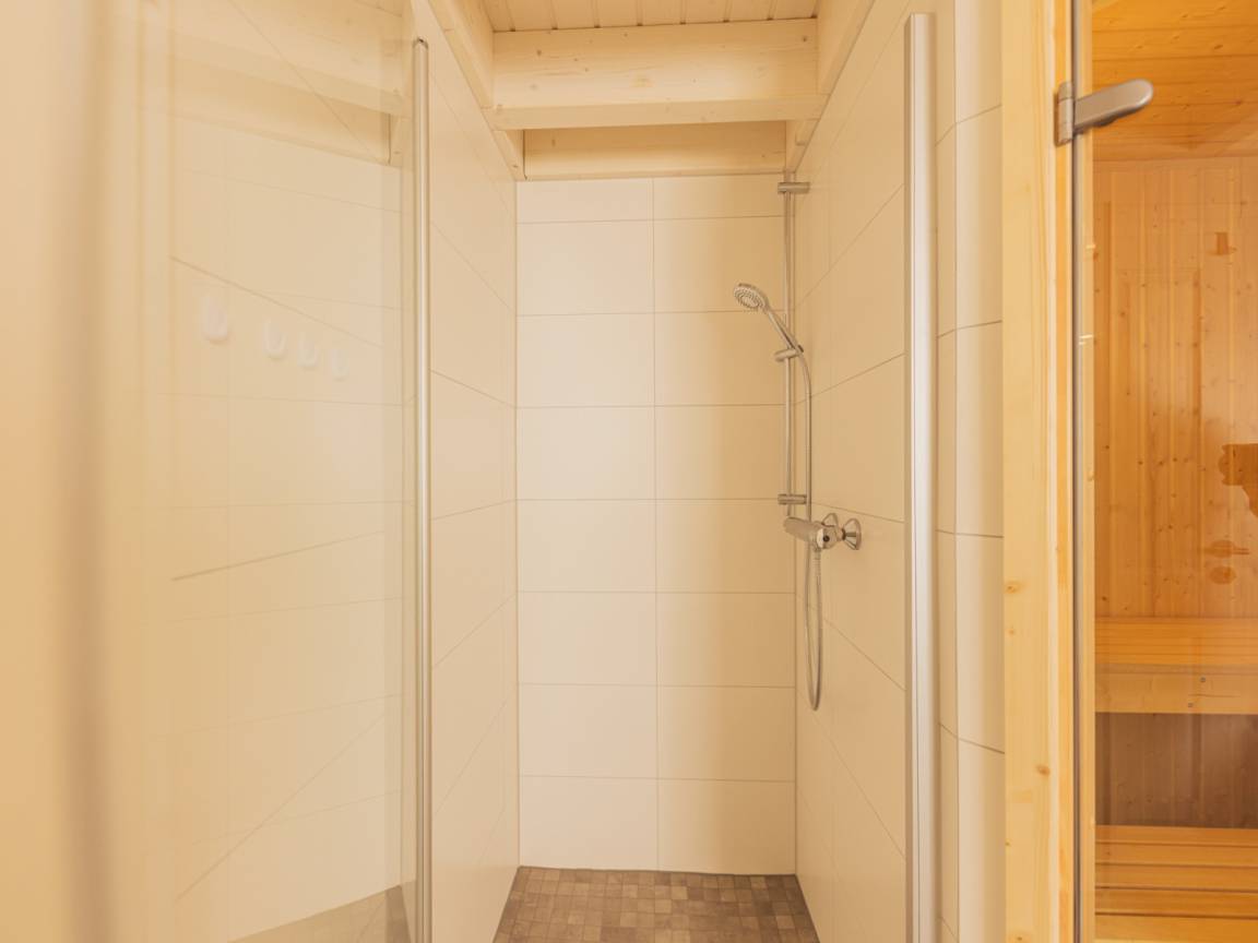 Das große, lichtdurchflutete Wellnessbad im Erdgeschoss verfügt über einen Whirlpool, eine ebenerdige Dusche und eine Sauna, in der Sie die Seele baumeln lassen können.
