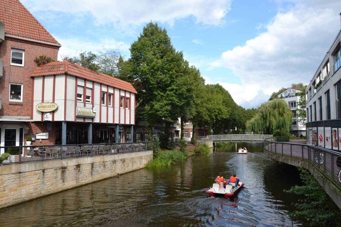 Nur 400m vom Stadtzentrum in Nordhorn entfernt, liegt unser Ferienhaus nahe des idyllischen Vechtesees. Auf der Sonnenterrasse, ausgestattet mit Gartenmöbeln, verbringen Sie einen entspannten Urlaubsabend.