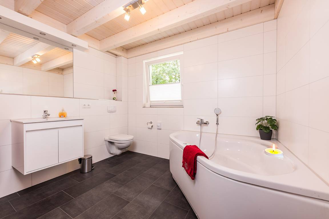 Im modernen Wellnessbad mit Sauna, bodengleicher Dusche und Whirlpool lassen Sie nach einem ereignisreichen Tag die Seele baumeln. Das lichtdurchflutete Badezimmer bietet Entspannung pur! Im Obergeschoss steht Ihnen ein separates WC mit Dusche zur Verfügung. Ein Abstellraum und Wäscheständer stehen ebenfalls zur Verfügung.