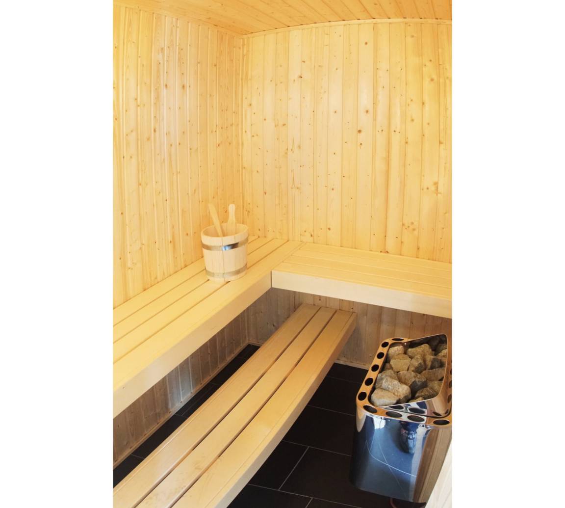 Das moderne Wellnessbad mit Whirlpool, Sauna und Dusche lässt keine Wünsche offen und sorgt für wohltuende Entspannung.