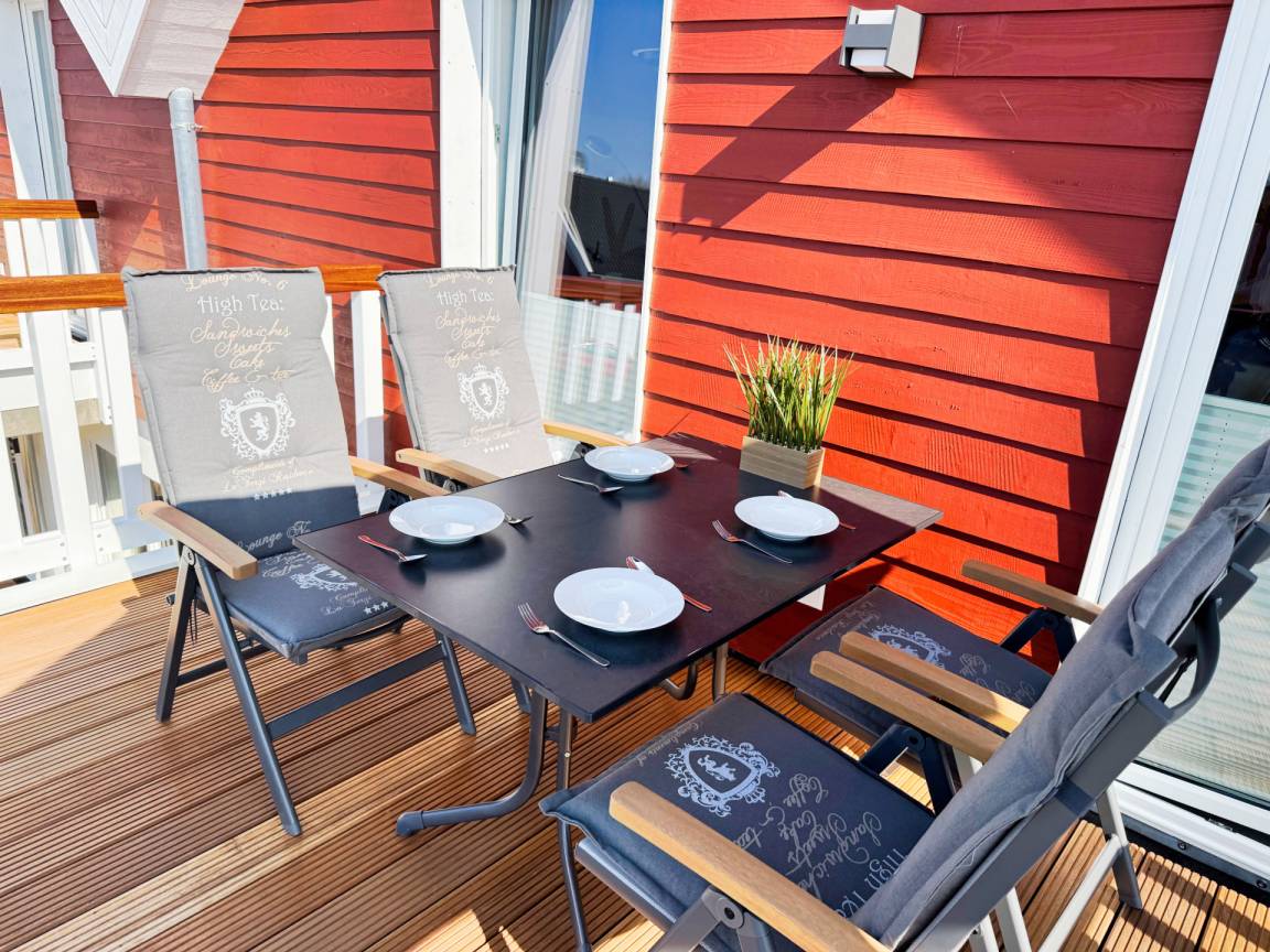Zwei Balkone - einer sonnig zur Südseite, der andere mit Blick auf den See in Richtung Westen - bieten zu jeder Tageszeit den perfekten Platz für entspannte Momente an der frischen Luft.