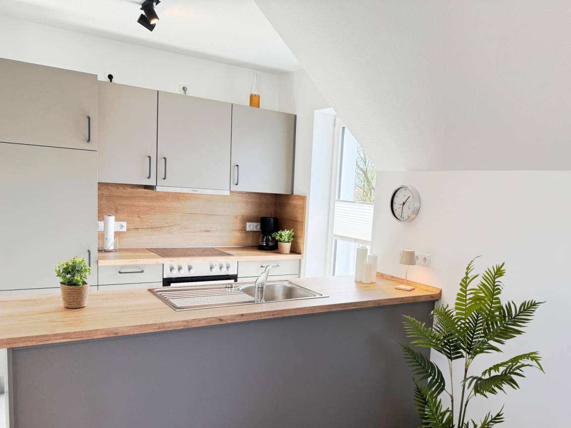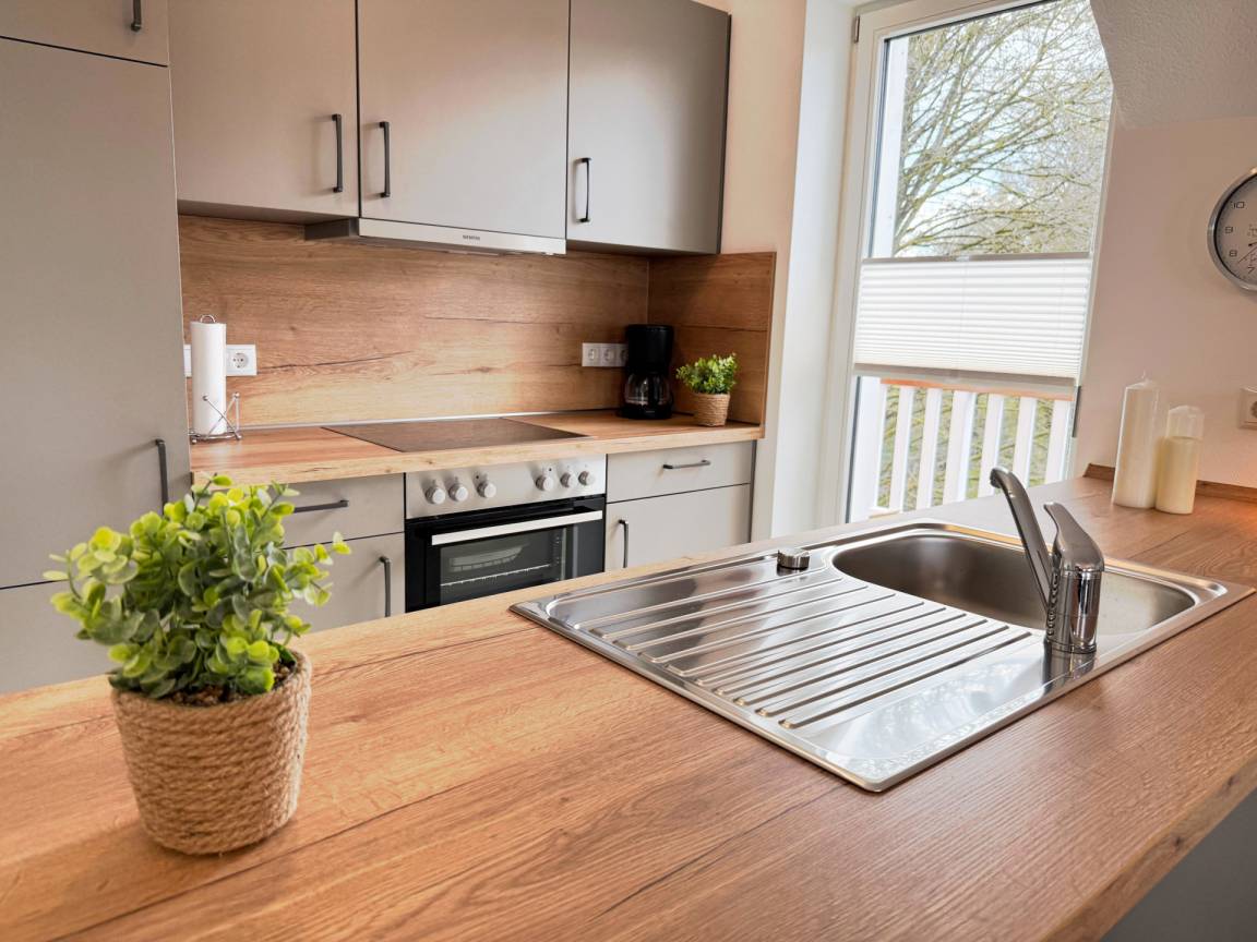 Die moderne, voll ausgestattete Küche lädt zu geselligen Kochabenden ein.