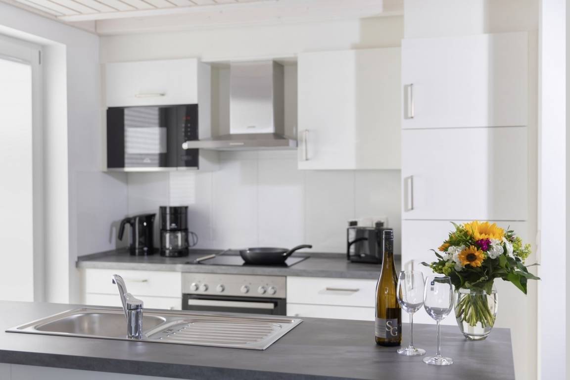 Kochen Sie in geselliger Runde oder alleine eines Ihrer Lieblingsgerichte, denn die offene Küche ist großzügig mit allem ausgestattet, was ein Gourmetherz höher schlagen lässt. Dazu zählen u.a. ein Ceranfeld, Backofen, Kühlschrank, Mikrowelle, Toaster, Kaffeemaschine, Mixer, gängige Gewürze und für das bequeme Aufräumen danach, ein Geschirrspüler.