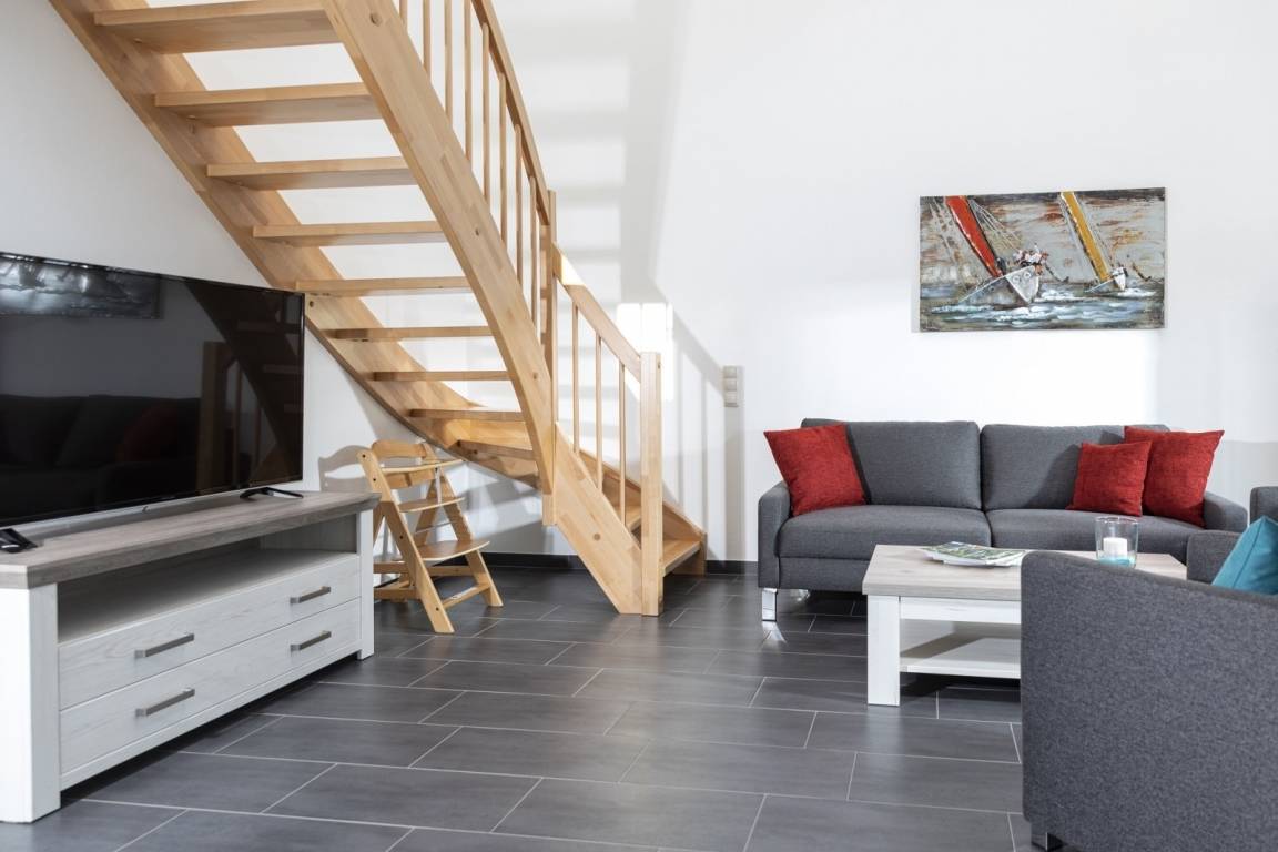 Nach dem Cool Down finden Sie im Wohnzimmer, ausgestattet mit Fernseher, kostenlosem WLAN (Highspeedinternet über Glasfaseranschluss), einem gemütlichen Ofen und einer bequemen Couch, ein ruhiges Plätzchen, um mit einem der vorhanden Bücher und einer Tasse Tee, Kaffee oder einem Glas Wein so richtig die Seele baumeln zu lassen. Oder aber Sie verlegen Ihr persönliches Entspannungsritual auf die wunderschöne Terrasse mit qualitativ hochwertigen Möbeln.