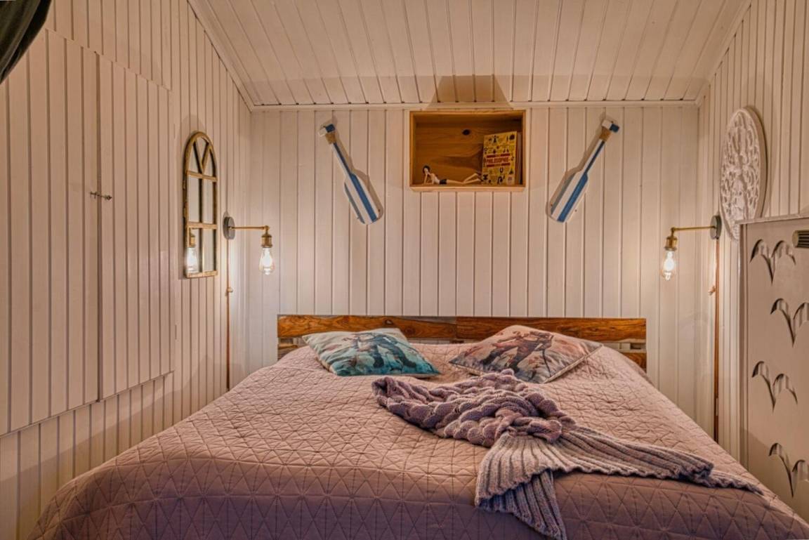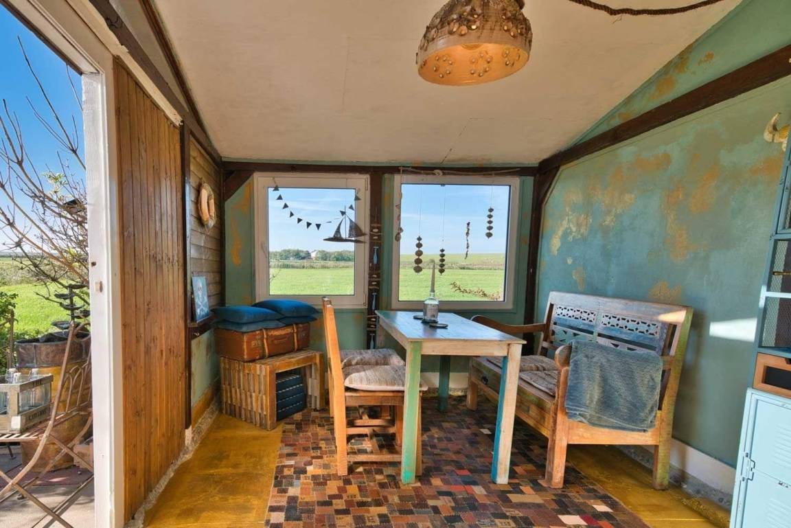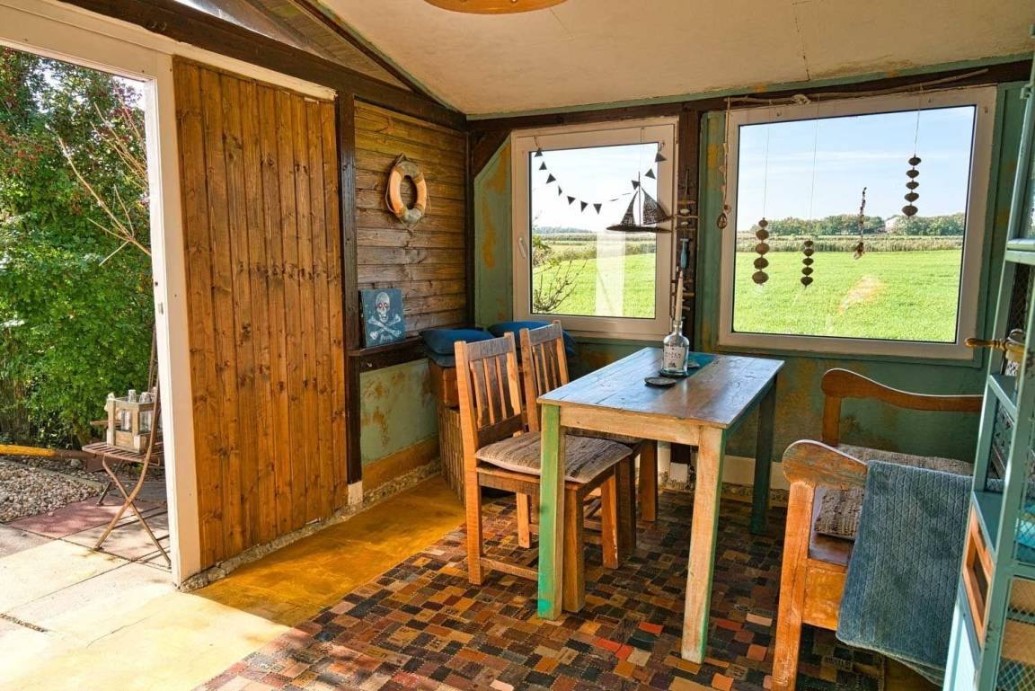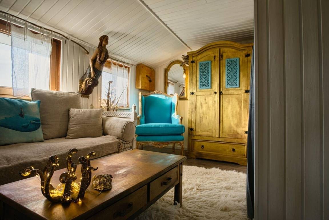 (sitzend) auf das Meer blicken, stünde der Deich nicht davor. Die Küche ist in den Wohnbereich integriert. Für alle großen Gäste ist es wichtig, zu wissen, dass die Deckehöhe hier nur 2,07 m beträgt. Unter diesem meerchenhaften Apartment befindet sich die Wohnung "Neptuns schönste Tochter an Land". Die Küche ist mit einem Dreiplatten-Herd, eine Minibackofen, mit einer Ninja-Crispi-Heißluftfritteuse, einer Moccamaster-Kaffeemaschine, einem elektrischen italienischen Espressokännchen, einem Milchaufschäumer, einem Wasserkocher, einem Toaster, einem Kühlschrank und allen erdenklichen Kochuntensilien ausgestattet. Das Bad hat eine Dusche.