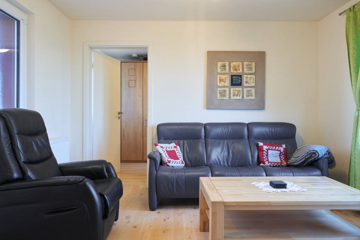 Im großzügigen Wohnzimmer können Sie entspannen, fernsehen, Musik hören oder einfach die Nordsee-Luft spüren.