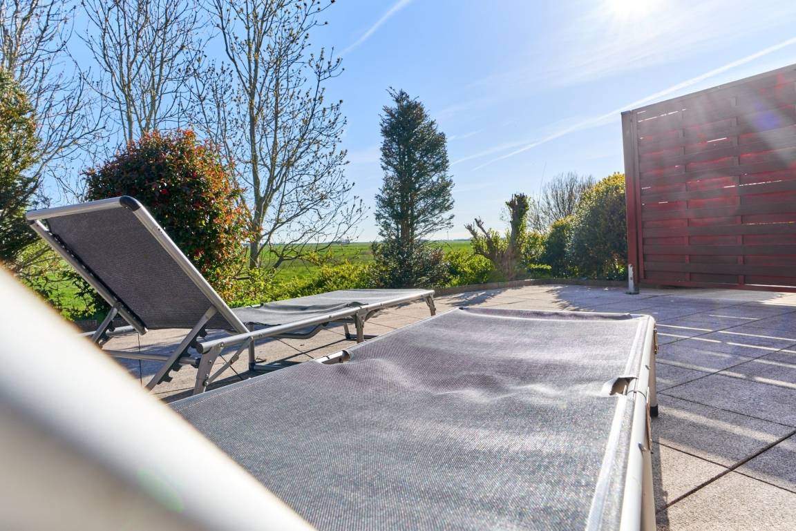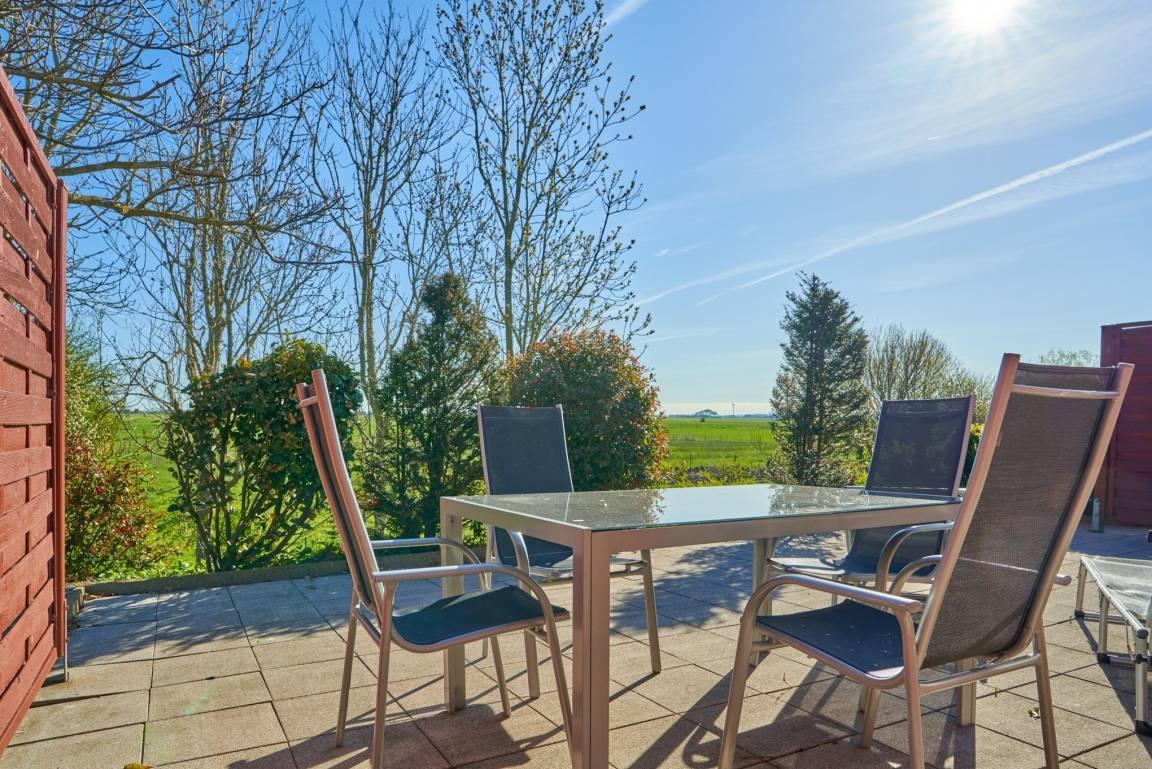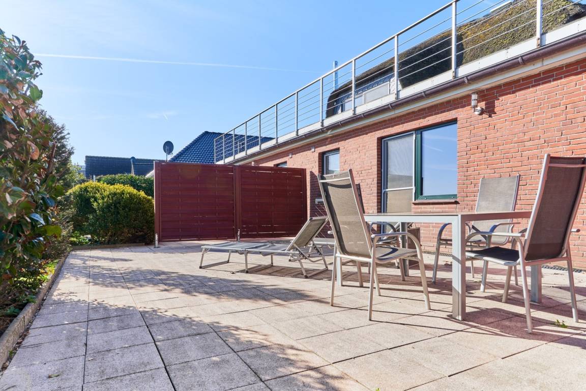 Von hier aus gelangen Sie auf die geschützte Terrasse mit Gartenmöbeln, ein perfekter Ort,