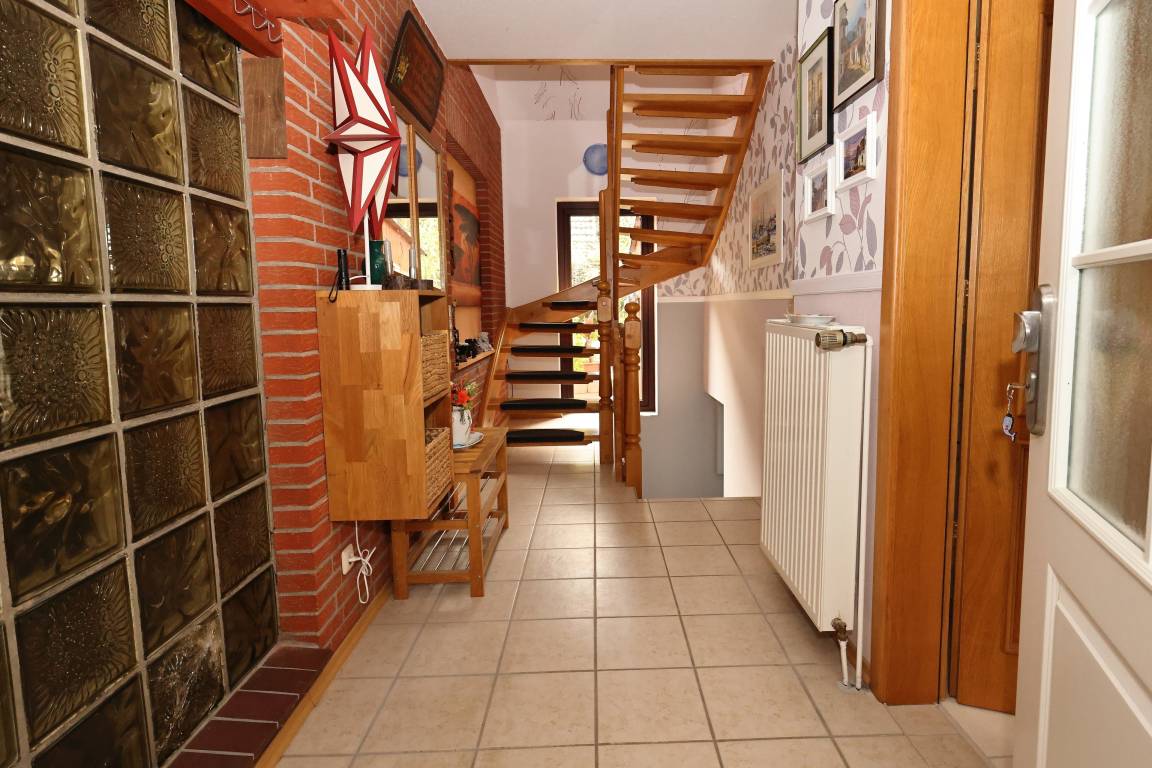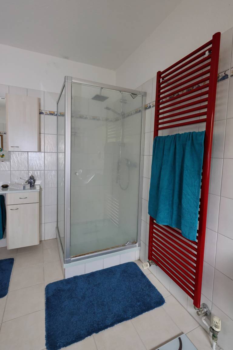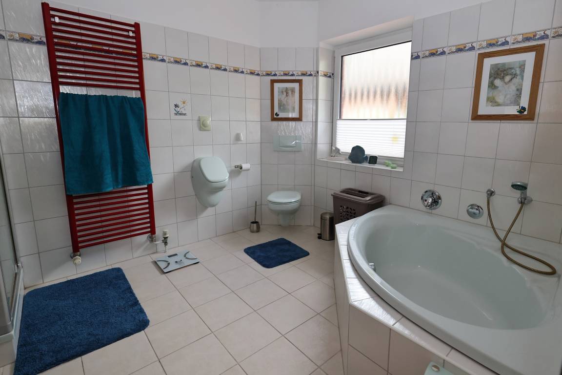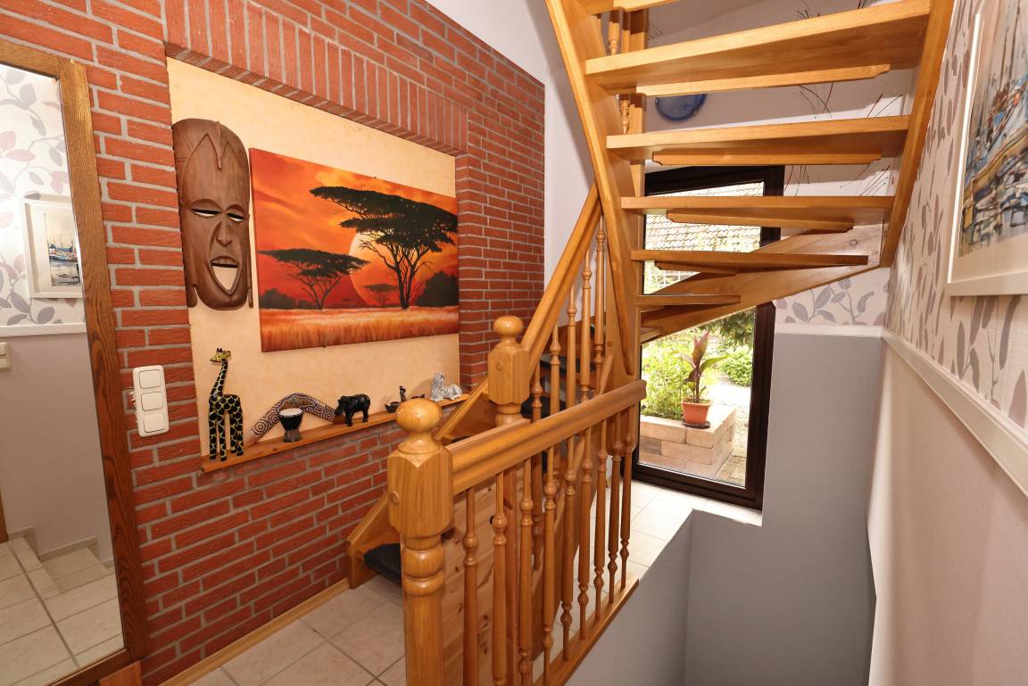 Im Erdgeschoss finden Sie ein voll ausgestattetes Badezimmer mit Badewanne, Dusche und WC sowie ein hochwertig ausgestattetes Wohnzimmer mit großem Essbereich. Von hier aus kommen Sie auf die schöne Terrasse. Hier lädt der Garten zum Verweilen ein. Im Obergeschoss ist die vollwertig ausgestattete Einbauküche zu finden, ein Schlafzimmer mit Doppelbett/Boxspringbett und ein Gäste-WC. Diese Wohnung ist eine Nichtraucherwohnung. W-Lan ist vorhanden. Ein öffentlicher Kinderspielplatz befindet sich direkt nebenan.