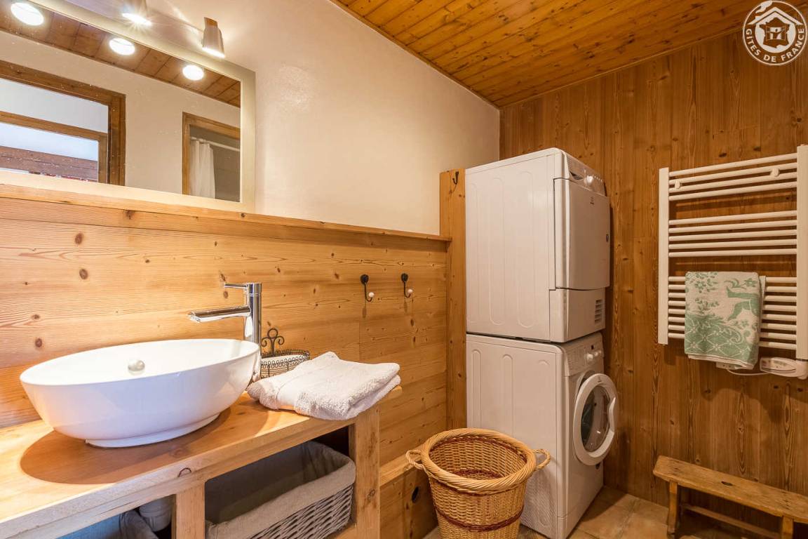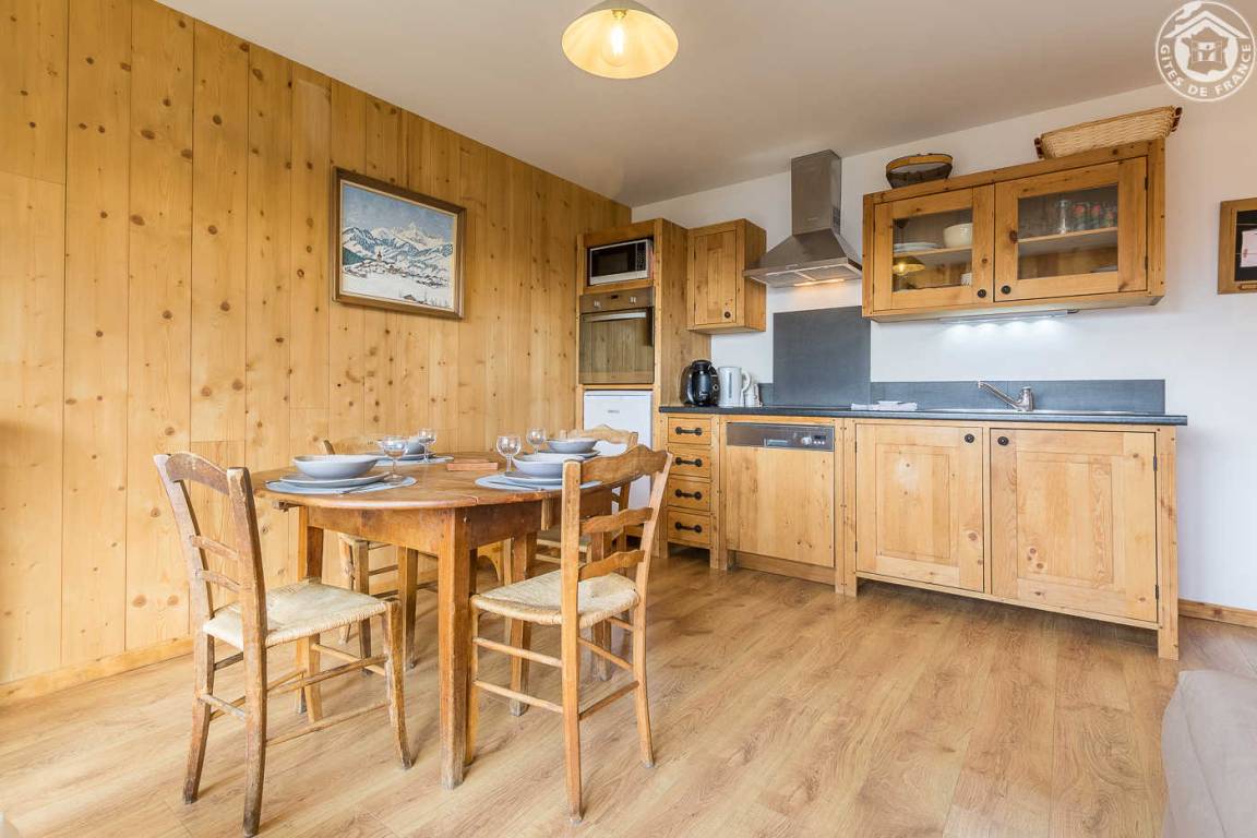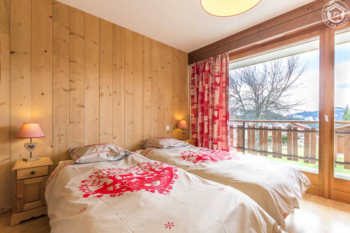 Gîte in einem großen Familienchalet mit 6 weiteren Unterkünften, darunter 2 Gîtes. Erdgeschoss: Wohnzimmer-Küche-Lounge, 2 Schlafzimmer (2 Einzelbetten / 1 Doppelbett), Badezimmer (Dusche), separates WC. Private Balkonterrasse. Hof/Parkplatz + Gemeinschaftsgrundstück. Skiraum in der Wohnung. Wii-Konsole. Bettwäsche inklusive + gemachte Betten + Haushaltswäsche inklusive. Skifahren Notre-Dame-de-Bellecombe/Espace Diamant 100 m, La Giettaz/Domaine Evasion Mont-Blanc 12 km (Verbindung Megève und Combloux), Megève 12 km. Langlaufloipen Les Saisies 12 km (Zugang mit Sessellift ab Crest-Voland 3 km möglich). Schwimmbad und Eisbahn 12km. Landschaftlich gestalteter See und Freizeitbasis 4 km.