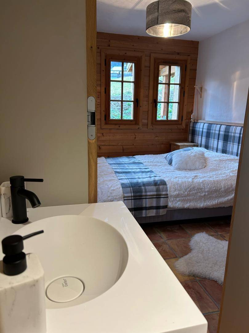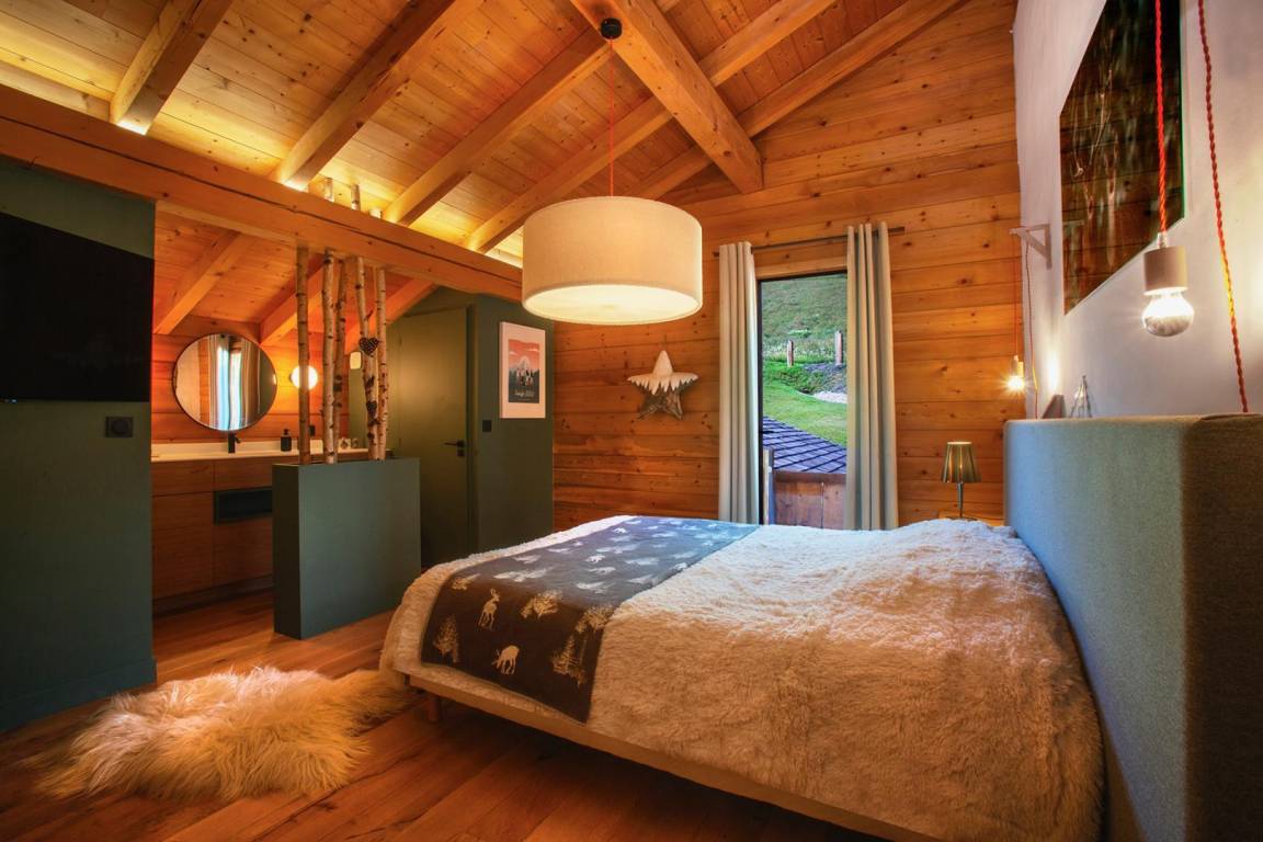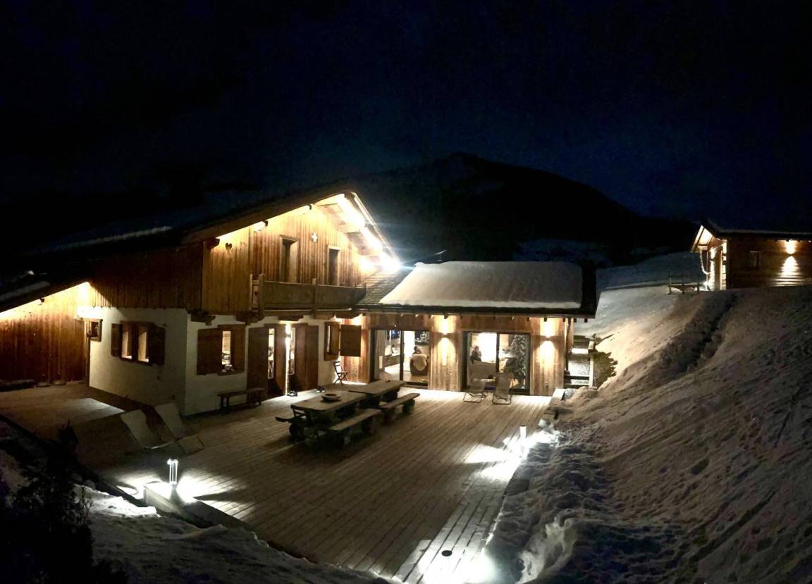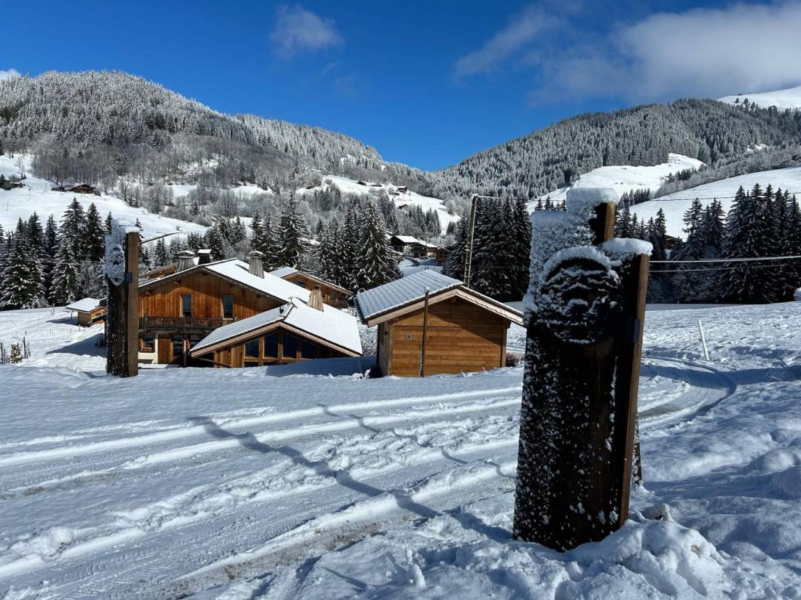 Dieses exklusive, freistehende Chalet liegt zwischen Notre-Dame-de-Bellecombe und Les Saisies, inmitten eines Naturschutzgebietes mit Almwiesen und Waldwiesen. Es besticht durch eine herrliche 100 m² große Terrasse und ein weitläufiges, sanft abfallendes Grundstück, das Ruhe und Erholung garantiert. Die großzügigen Räumlichkeiten, insbesondere das helle und einladende Wohnzimmer mit Kamin und großen Fenstern, wirken sofort einladend. Hochwertige Ausstattung und All-inclusive-Service sorgen für optimalen Komfort zu jeder Jahreszeit. Im Sommer steht vor dem Chalet eine 50 Meter lange, abfallende Zufahrt zum Parken bereit. Im Winter gibt es private Parkplätze am Straßenrand (für 2-3 Fahrzeuge je nach Größe) mit separatem Fußweg zum Chalet.