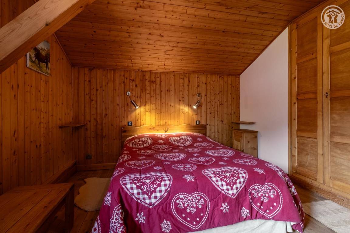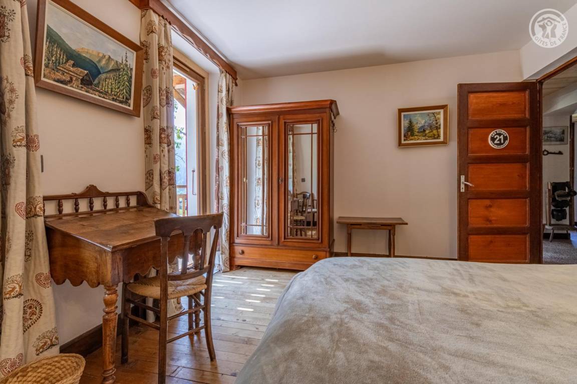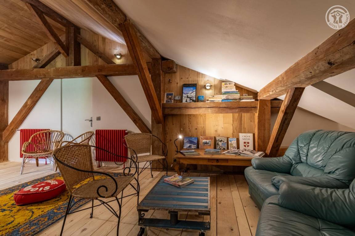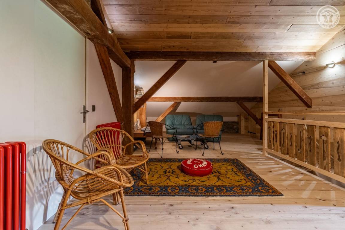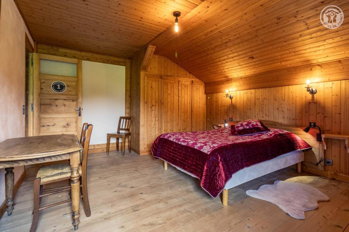 Neben dem Haus des Eigentümers, angrenzend an den Stall des Lehrbauernhofs des Eigentümers. Ehemaliges Familienhaus auf 3 Ebenen. Zugang über eine kleine Steintreppe. Im 1. Stock: Küche (Zugang zur großen Terrasse vom langen Balkon aus), kleines Wohnzimmer, 2 Schlafzimmer mit Zugang zum Balkon (Les Gueux: 1 Doppelbett 140x190 cm / La Combe: 2 Einzelbetten, die auf 80x190 cm zusammengestellt werden können), Badezimmer (Badewanne), Duschraum für Personen mit eingeschränkter Mobilität (Dusche + WC), separates WC, Garderobe. Im 2. Stock: 3 Schlafzimmer (La Verdette: 2 Einzelbetten 90x190 cm / Le Reguet: 1 Einzelbett 90x190 cm / Mont Rond: 1 Doppelbett 140x190 cm mit Waschbecken), separates WC. Im 3. Stock: Ruheraum, 2 Schlafzimmer (Kandahar: 1 Doppelbett 140x190 cm / Les Marmottons: 1 Doppelbett 140x190 cm), Badezimmer (Dusche + WC). Privatparkplatz im Hof (2 Stellplätze). Handtücher und Bettwäsche können beim Eigentümer gemietet werden.