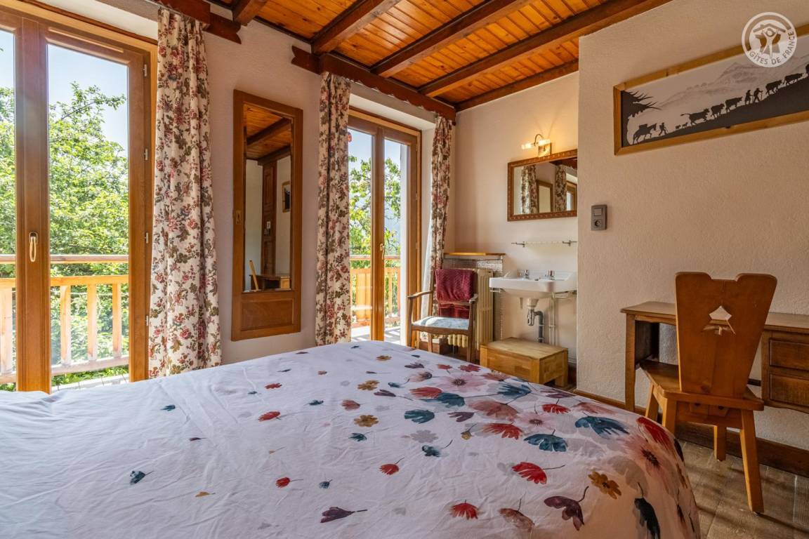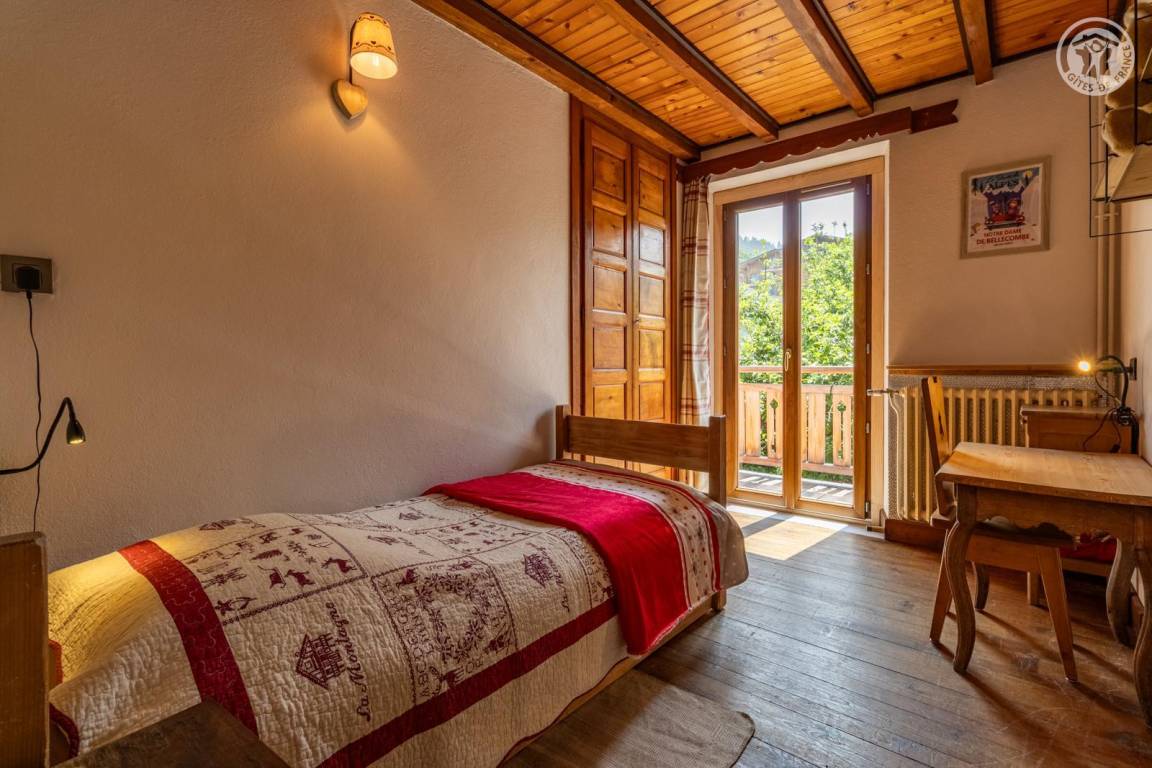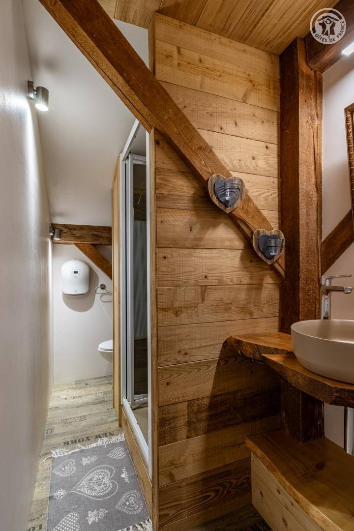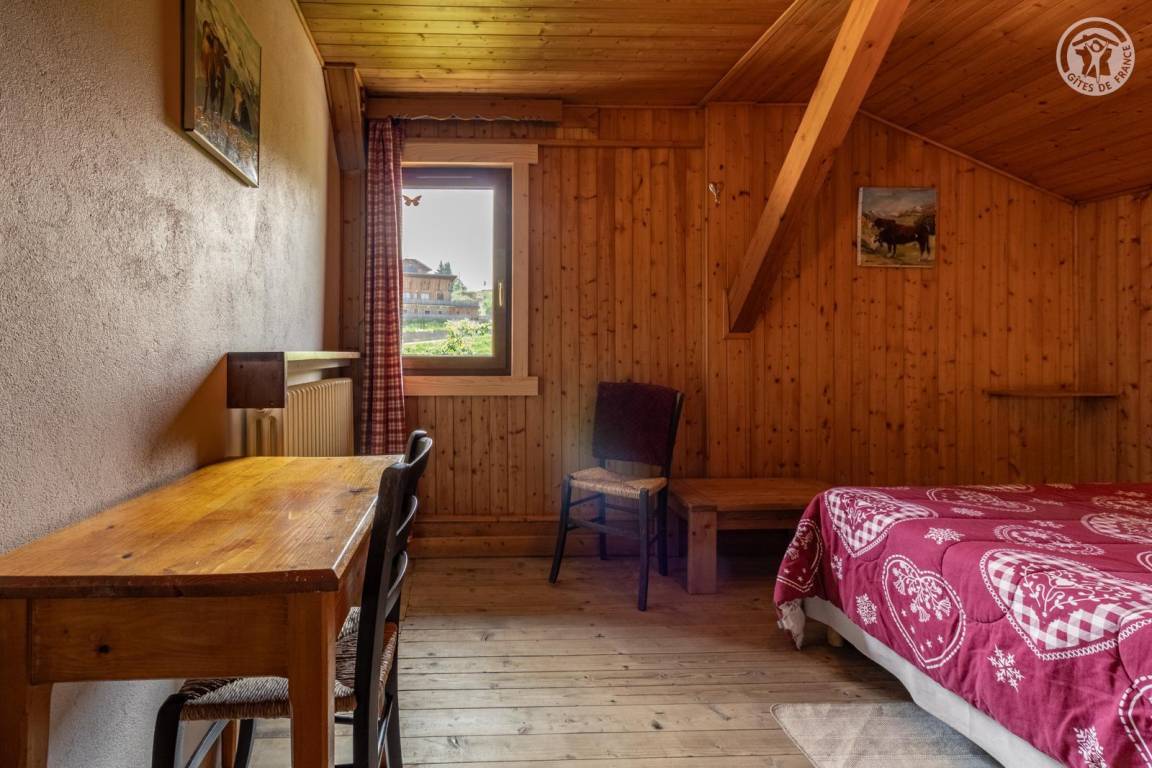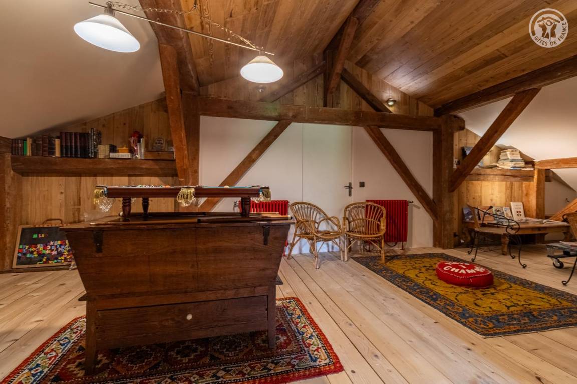 Neben dem Haus des Eigentümers, angrenzend an den Stall des Lehrbauernhofs des Eigentümers. Ehemaliges Familienhaus auf 3 Ebenen. Zugang über eine kleine Steintreppe. Im 1. Stock: Küche (Zugang zur großen Terrasse vom langen Balkon aus), kleines Wohnzimmer, 2 Schlafzimmer mit Zugang zum Balkon (Les Gueux: 1 Doppelbett 140x190 cm / La Combe: 2 Einzelbetten, die auf 80x190 cm zusammengestellt werden können), Badezimmer (Badewanne), Duschraum für Personen mit eingeschränkter Mobilität (Dusche + WC), separates WC, Garderobe. Im 2. Stock: 3 Schlafzimmer (La Verdette: 2 Einzelbetten 90x190 cm / Le Reguet: 1 Einzelbett 90x190 cm / Mont Rond: 1 Doppelbett 140x190 cm mit Waschbecken), separates WC. Im 3. Stock: Ruheraum, 2 Schlafzimmer (Kandahar: 1 Doppelbett 140x190 cm / Les Marmottons: 1 Doppelbett 140x190 cm), Badezimmer (Dusche + WC). Privatparkplatz im Hof (2 Stellplätze). Handtücher und Bettwäsche können beim Eigentümer gemietet werden.