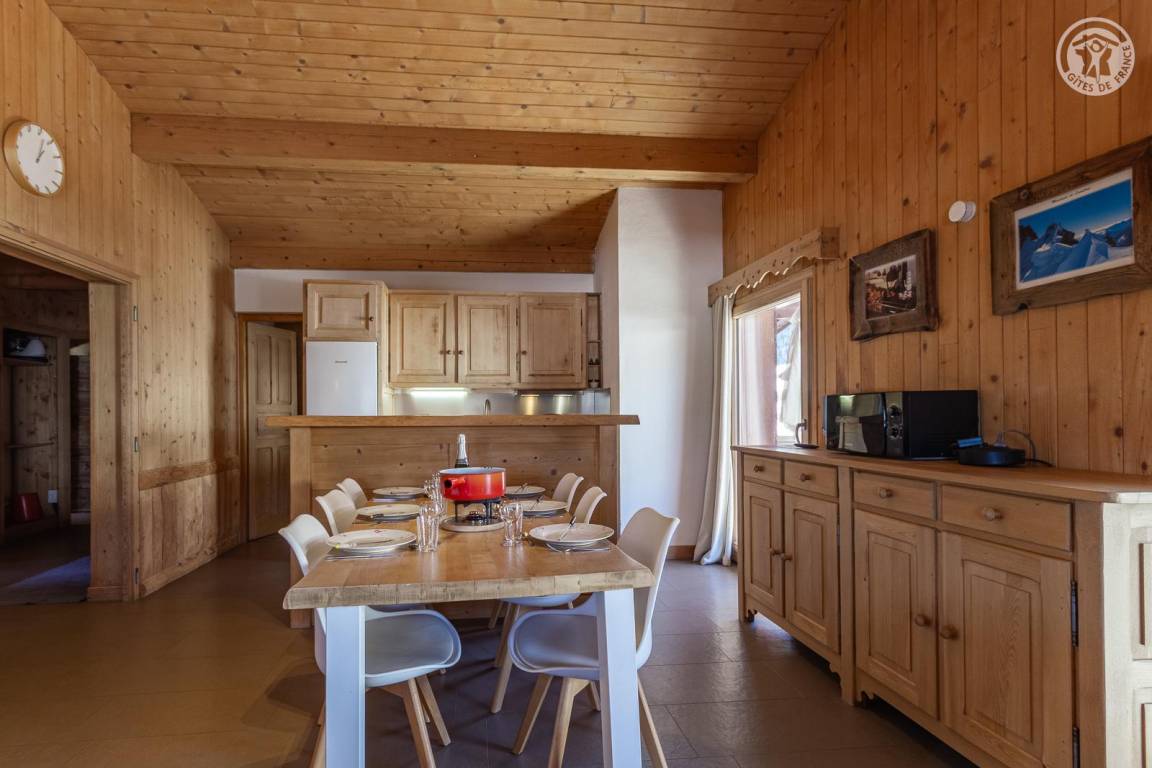 2 Ferienhäuser im Haus. 1. Stock (unabhängiger Zugang): Wohnzimmer-Küchen-Lounge-Bereich, WiFi-Verbindung, CD/Bluetooth/MP3/Audio-Eingangs-Mikrosystem, 3 Schlafzimmer, 1 davon mit eigener Dusche/WC (1 Doppelbett 160x200 cm / 1 Doppelbett 160x200 cm / 4 Einzelbetten 90x190 cm, davon 2 Etagenbetten, Badezimmer (Dusche), Badezimmer (Dusche), separates WC. Gesamtnutzfläche: 100 m² inklusive Dachgeschossflächen. Balkon. Boden. Skigebiet N.D. de Bellecombe 200 m / Espace Diamant, Les Saisies 8 km.