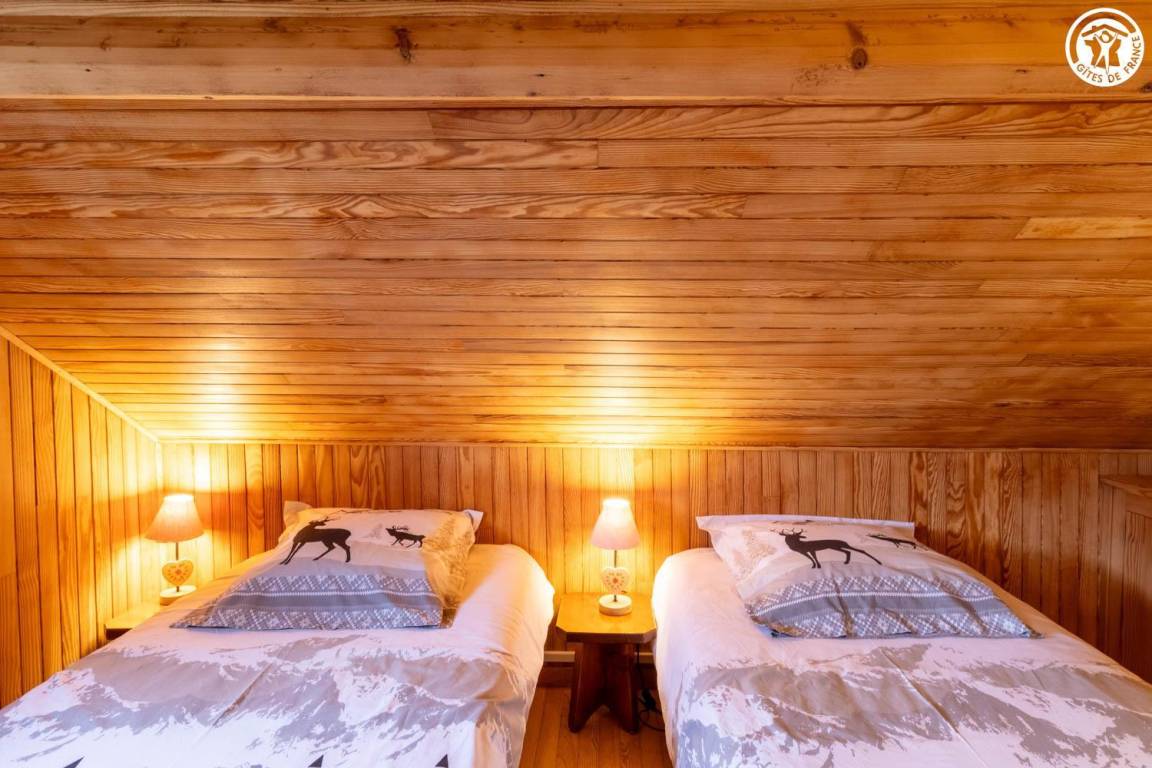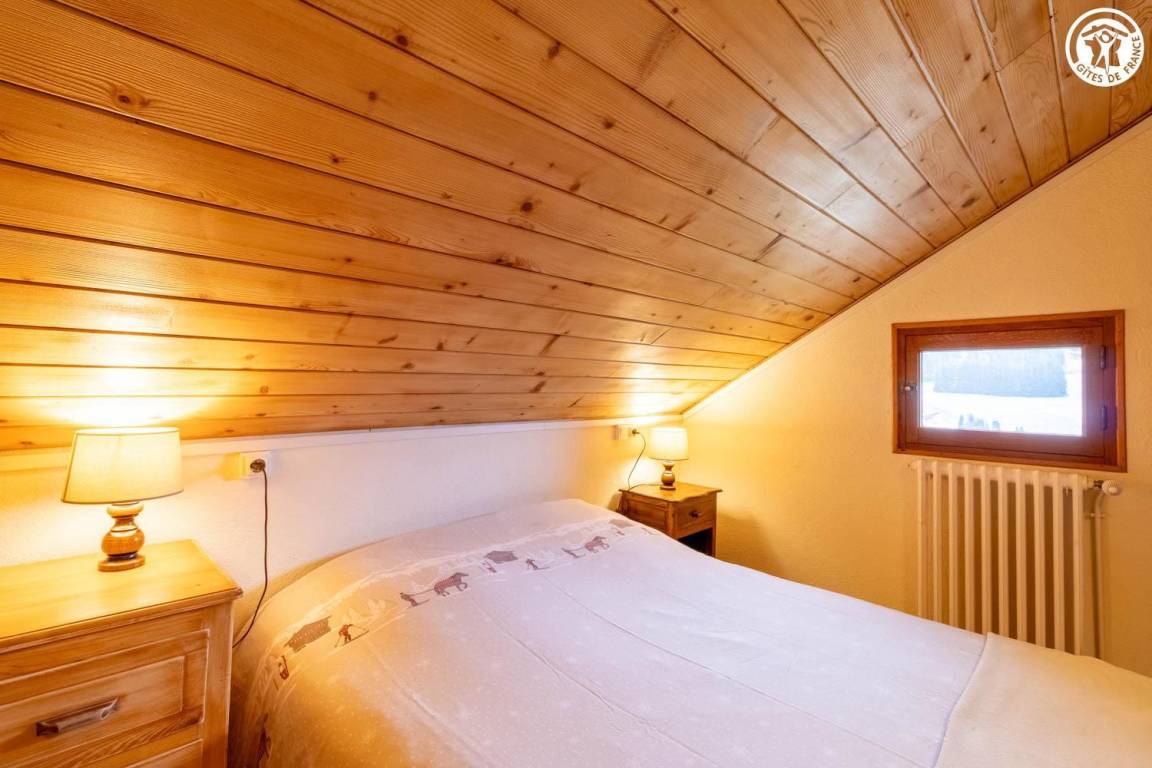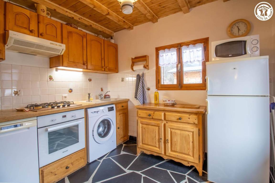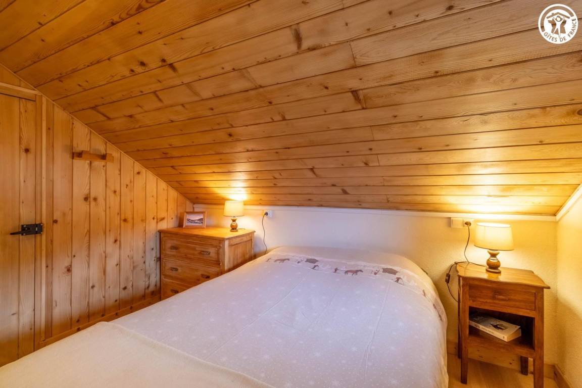 1 Gîte + 1 Unterkunft im Haus, auf 2 Ebenen. 1. Etage: Küche, Wohnzimmer, Duschraum (ebenerdige Dusche/WC). 2. Stock: 2 angrenzende Schlafzimmer, 1 mit WC (1 Doppelbett/1 Doppelbett), Mezzanine (2 Einzelbetten). Balkon + Balkonterrasse + Grundstück (Schaukel). Gesamtfläche der Gîte: 67 m² einschließlich Dachbodenflächen. Skigebiet Notre Dame de Bellecombe / Espace Diamant 1,5 km.