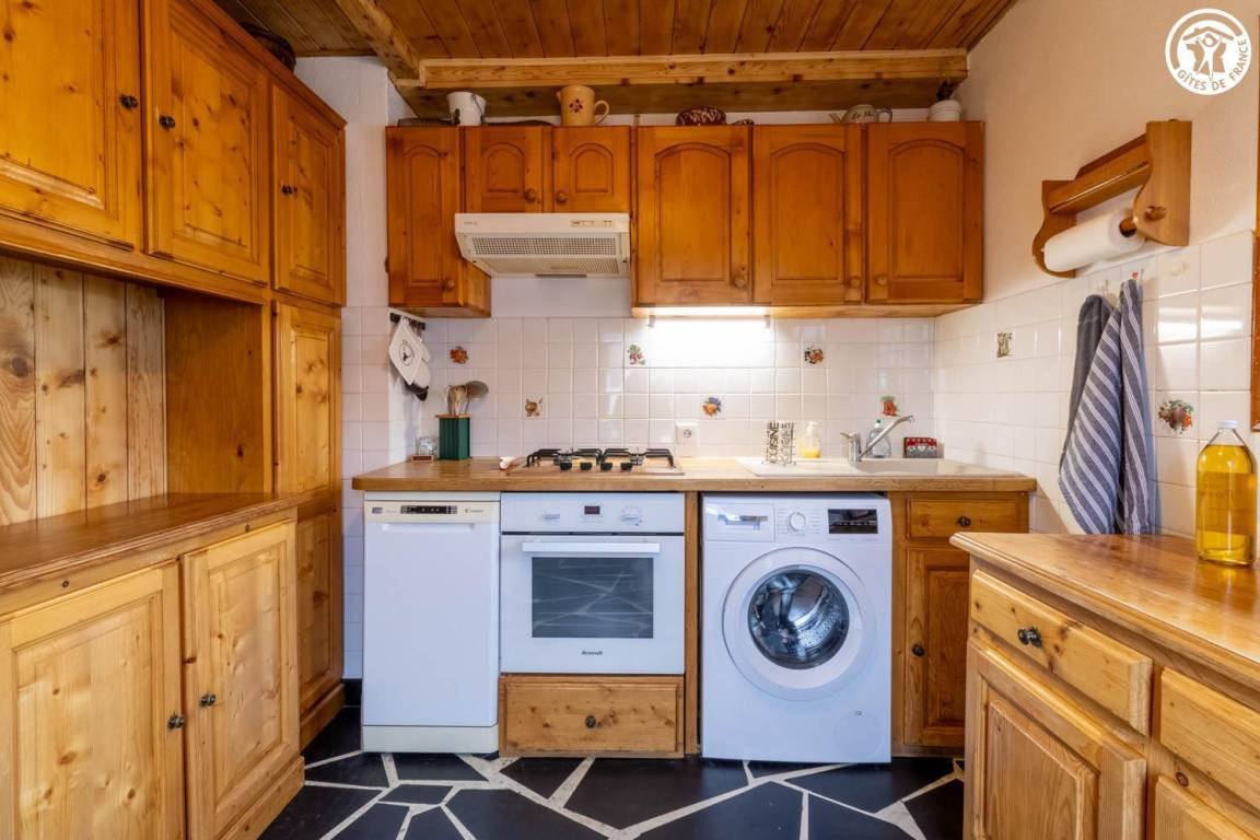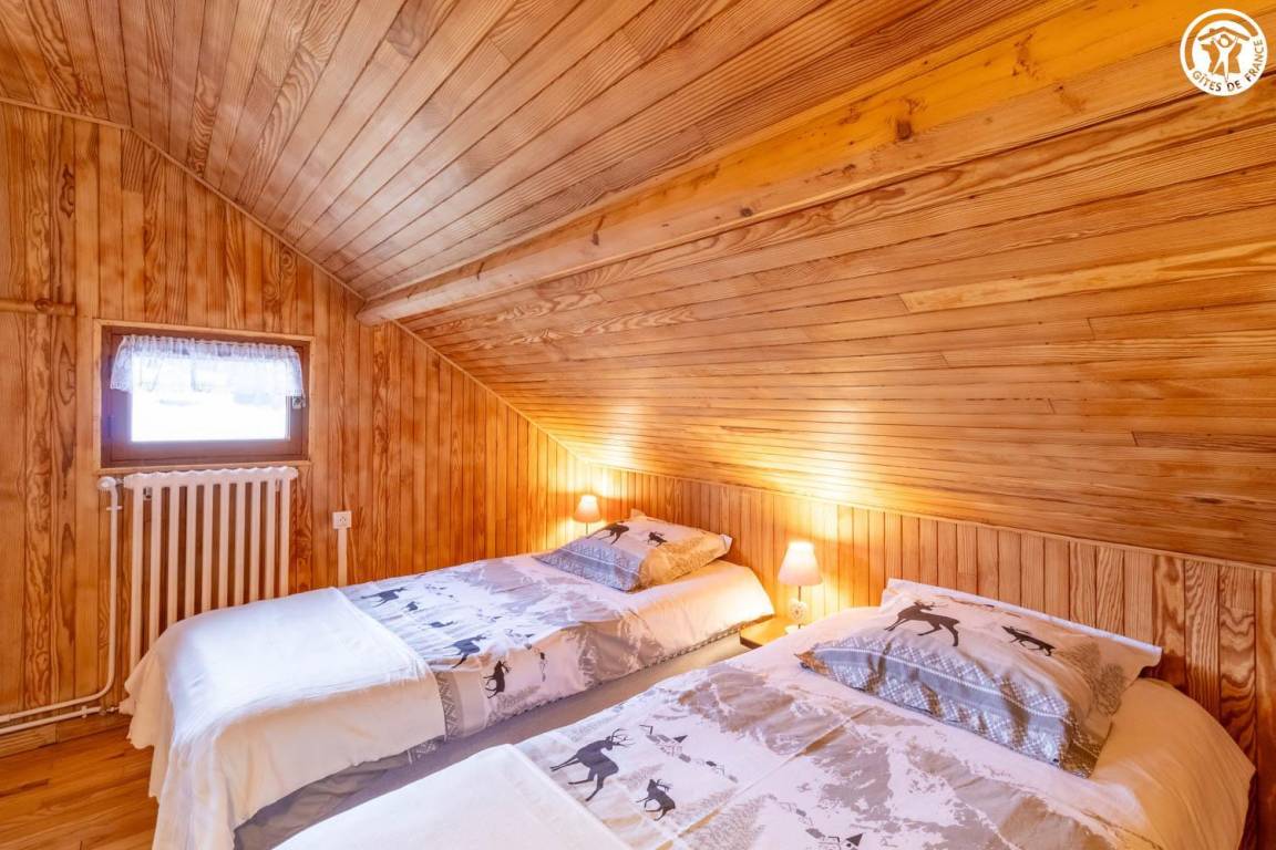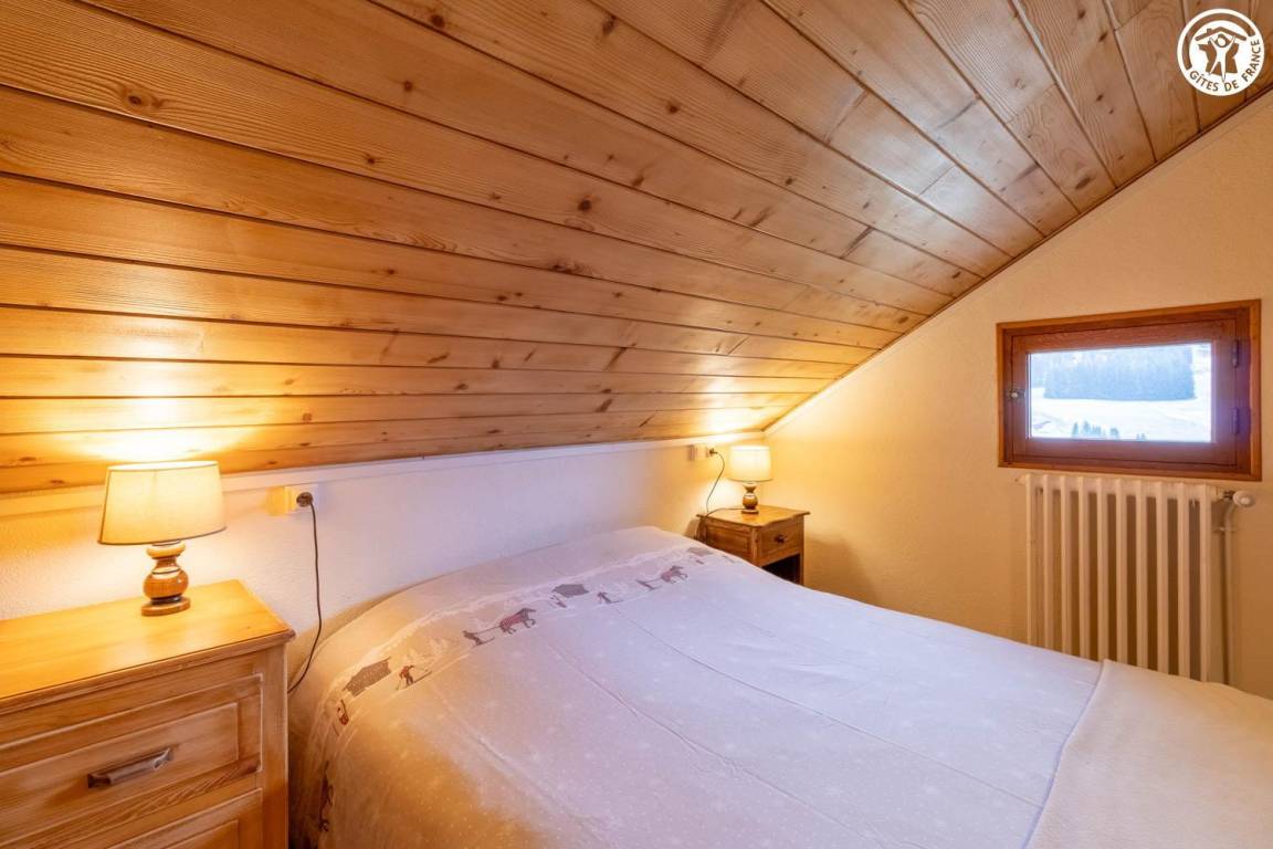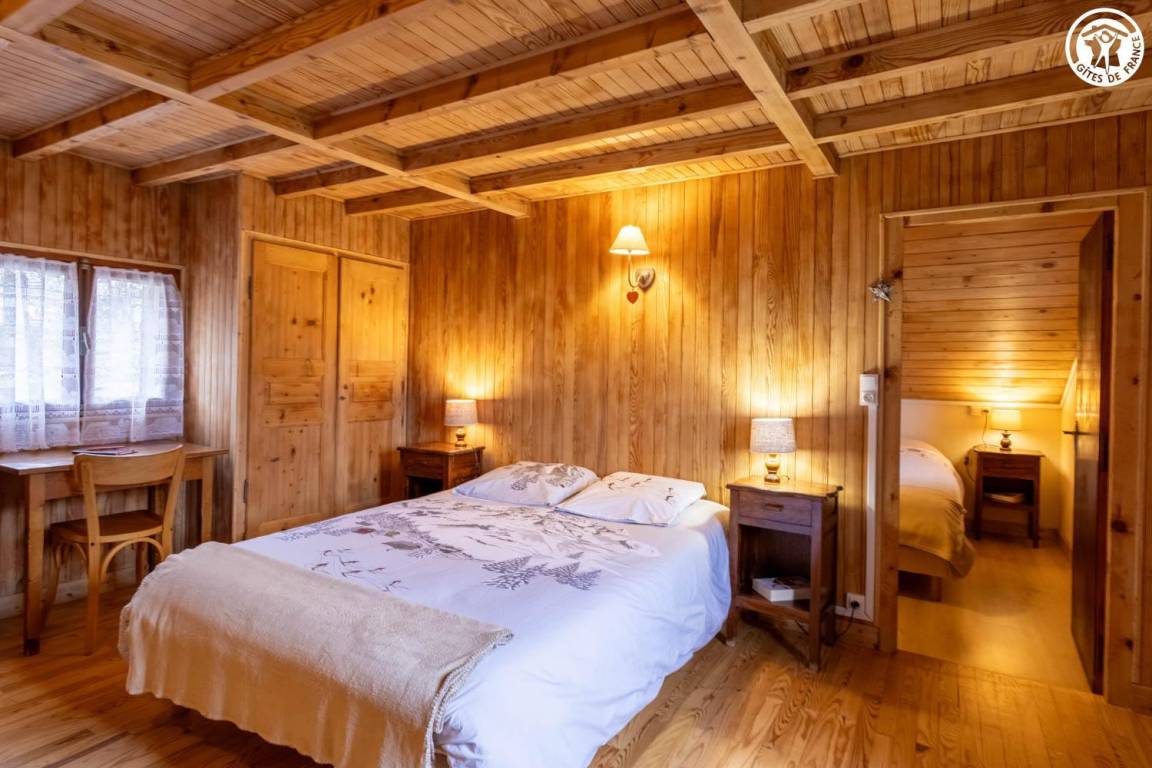 1 Gîte + 1 Unterkunft im Haus, auf 2 Ebenen. 1. Etage: Küche, Wohnzimmer, Duschraum (ebenerdige Dusche/WC). 2. Stock: 2 angrenzende Schlafzimmer, 1 mit WC (1 Doppelbett/1 Doppelbett), Mezzanine (2 Einzelbetten). Balkon + Balkonterrasse + Grundstück (Schaukel). Gesamtfläche der Gîte: 67 m² einschließlich Dachbodenflächen. Skigebiet Notre Dame de Bellecombe / Espace Diamant 1,5 km.