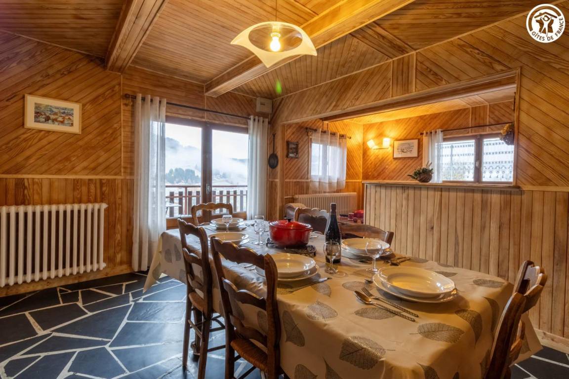 „Un chalet très bien situé par rapport au domaine skiable, au calme, avec vue sur une vallée et avec des commerces à 10 mn en voiture, avec un accueil très agréable de la propriétaire et une location avec terrasse confortable et bien équipée au 1er étage“