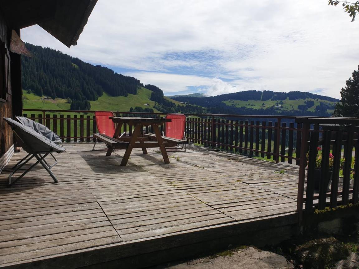 „Superbe vue, propriétaire sympathique, chalet pour 4 personnes fonctionnel. Lit fait en arrivant, appréciable. Accès au piste de mont Rond proche.“