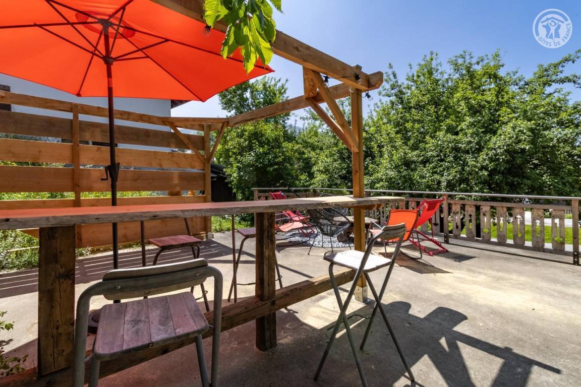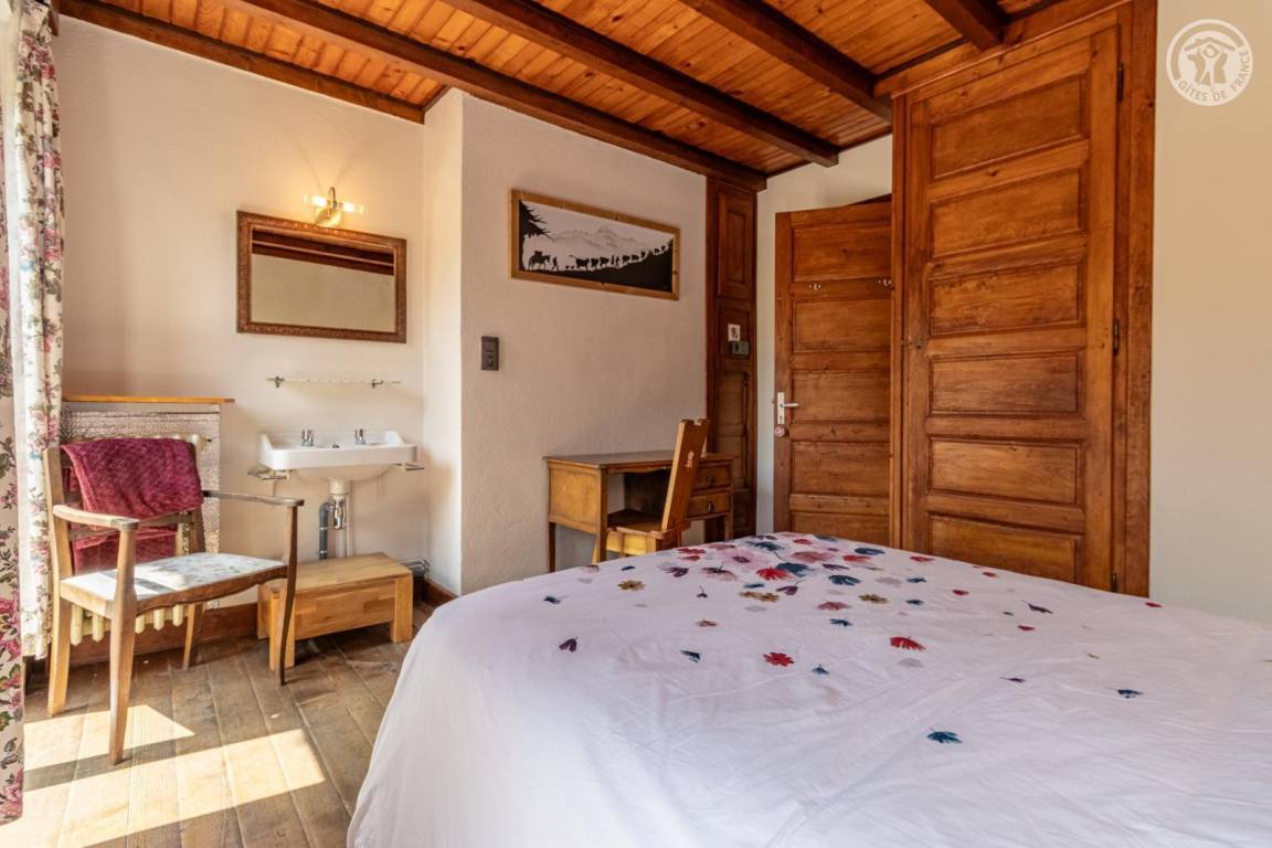 Neben dem Haus des Eigentümers, angrenzend an den Stall des Lehrbauernhofs des Eigentümers. Ehemaliges Familienhaus auf drei Ebenen. Zugang über eine kleine Steintreppe. Im 1. Stock: Küche (Zugang zur großen Terrasse vom langen Balkon), kleines Wohnzimmer, 2 Schlafzimmer mit Zugang zum Balkon (Les Gueux: 1 Doppelbett 140 x 190 cm / La Combe: 2 Einzelbetten, die zu 80 x 190 cm zusammengeschoben werden können), Badezimmer (Badewanne), Duschraum für Personen mit eingeschränkter Mobilität (Dusche + WC), separates WC, Garderobe. Im 2. Stock: 3 Schlafzimmer (La Verdette: 2 Einzelbetten 90 x 190 cm / Le Reguet: 1 Einzelbett 90 x 190 cm / Mont Rond: 1 Doppelbett 140 x 190 cm mit Waschbecken), separates WC. Privatparkplatz im Hof (2 Stellplätze). Verleih von Bad- und Bettwäsche beim Eigentümer möglich.