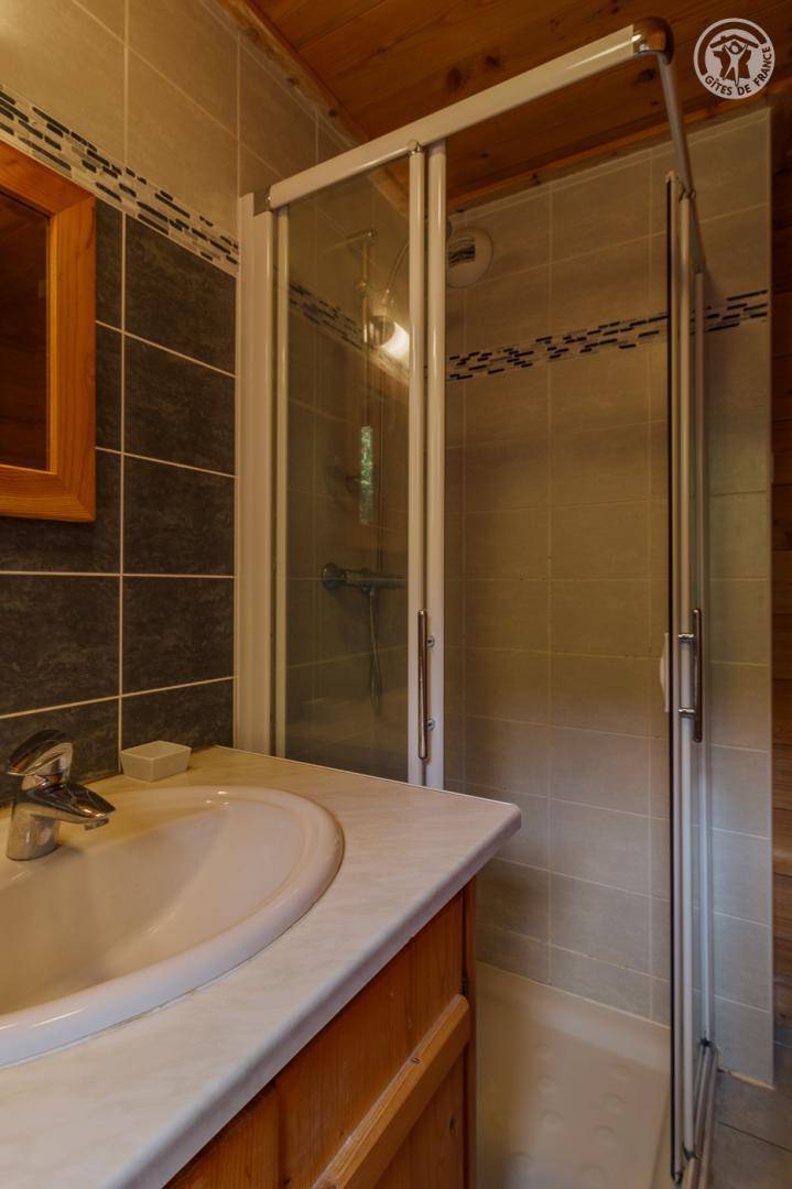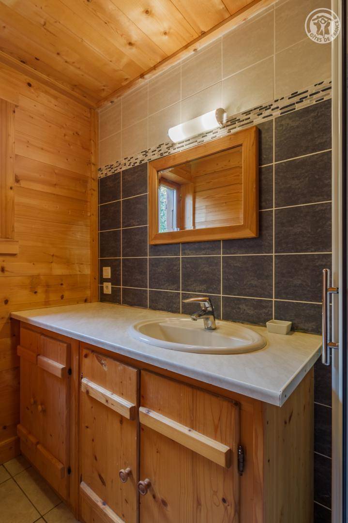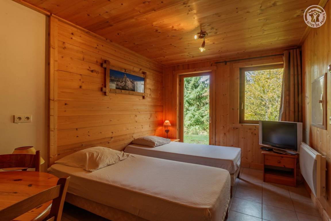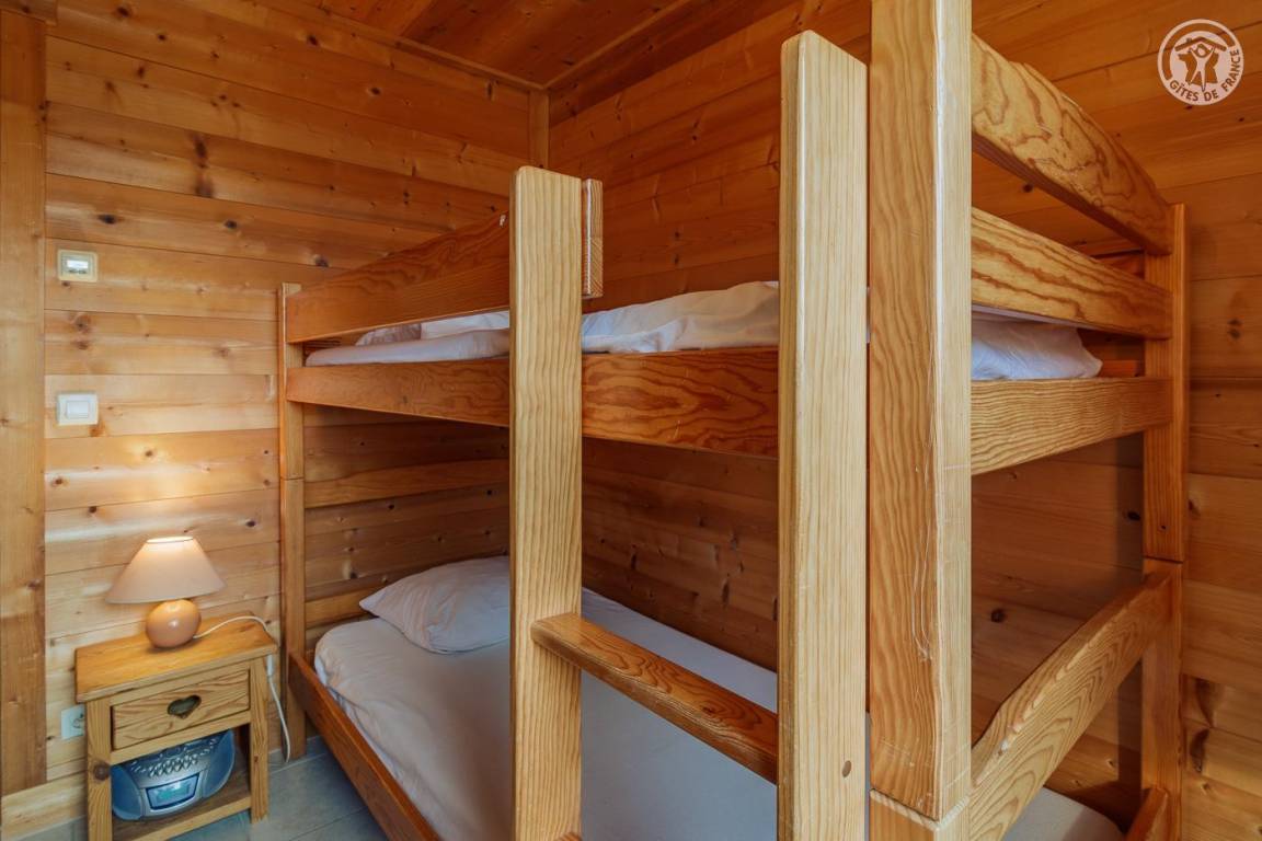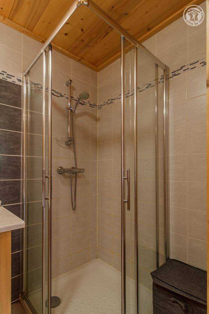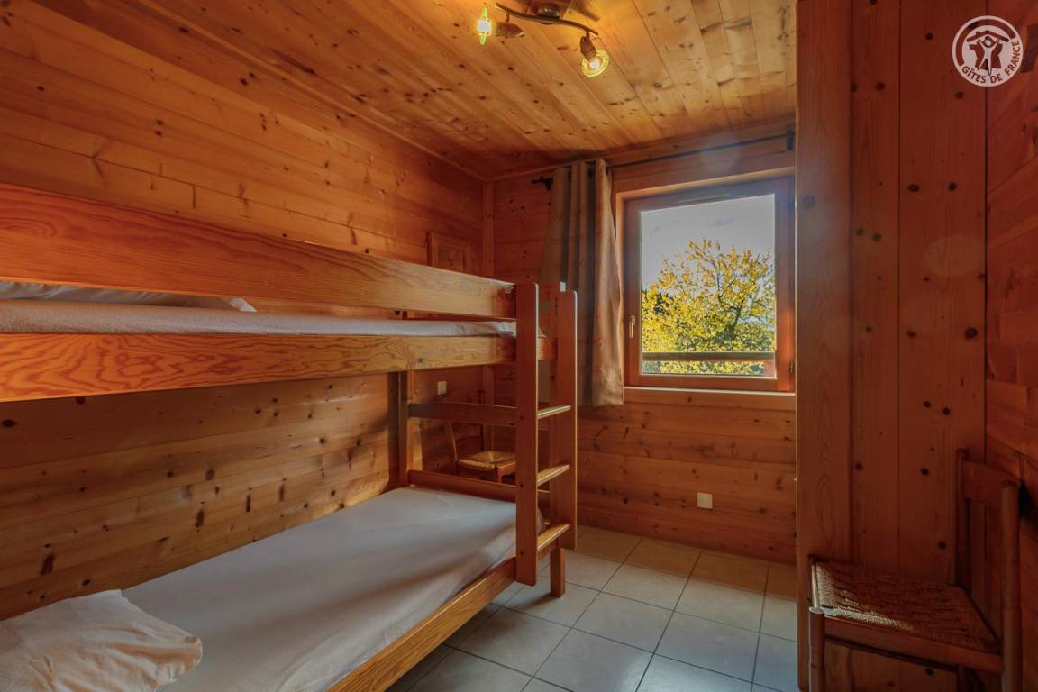 Doppelhaushälfte mit 5 Gîtes. 1. Stock: Wohnzimmer, Küche und Aufenthaltsraum, 1 Schlafzimmer (2 Einzeletagenbetten 90 x 190 cm), 2 Schlafzimmer mit Zugang vom Treppenabsatz, gemeinsam mit den anderen Unterkünften im Chalet (1 Doppelbett 140 x 190 cm und 2 Einzelbett). Betten 90 x 190 cm), darunter 2 Schlafzimmer mit Zugang. 2 Badezimmer (Duschen), 2 separate Toiletten. Private Terrasse. Gemeinsamer Innenhof und Garten. Gemeinsamer Parkplatz für 9 Stellplätze. Waschküche mit gemeinsamer Waschmaschine und Trockner.