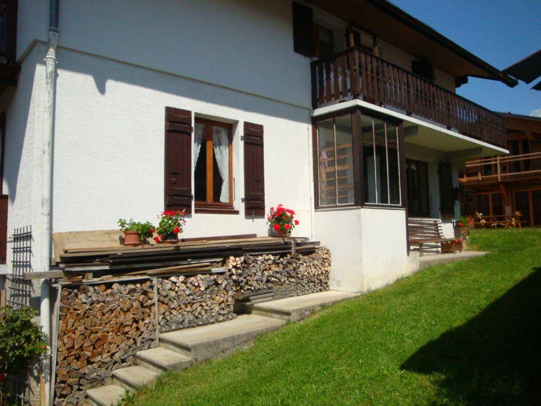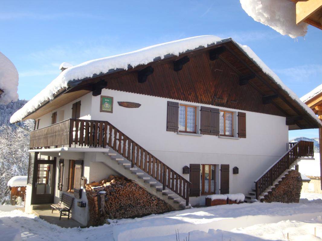 3 Gîtes im Haus des Besitzers. Erdgeschoss (separater Zugang: Küche, 2 Schlafzimmer, davon 1 zum Wohnraum umgebaut (1 Doppelbett/ 1 Doppelbett, 1 Einzelbett), Duschbad (Dusche), separates WC. Balkon Unten angrenzendes gemeinsames Grundstück das Ferienhaus Ski Notre-Dame-de-Bellecombe/Espace Diamant 300 m, Megève oder les Saisies 12 km, See Flumet 4 km.